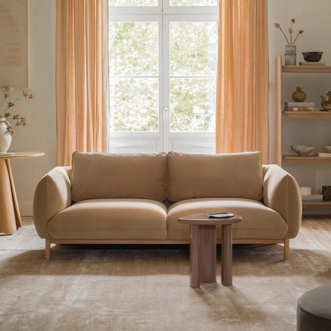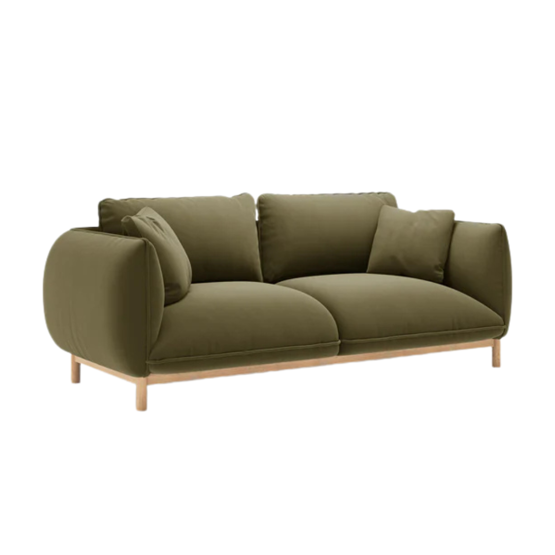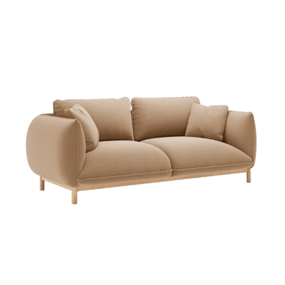 A skandináv stílus ihlette Ada 2 személyes kanapé puha sziluettjét erős fa váz támasztja alá. Kompakt mérete miatt kis helyiségekbe is remekül illeszkedik. Ívelt forma, lekerekített karfákkal, amelyek zökkenőmentesen illeszkednek a háttámlához. A látható fa váz és a díszes díszítésű lábak természetes, kézműves megjelenést kölcsönöznek ennek a bútornak. Gondos odafigyeléssel és minőségre törekedve, megrendelésre gyártják Európában.