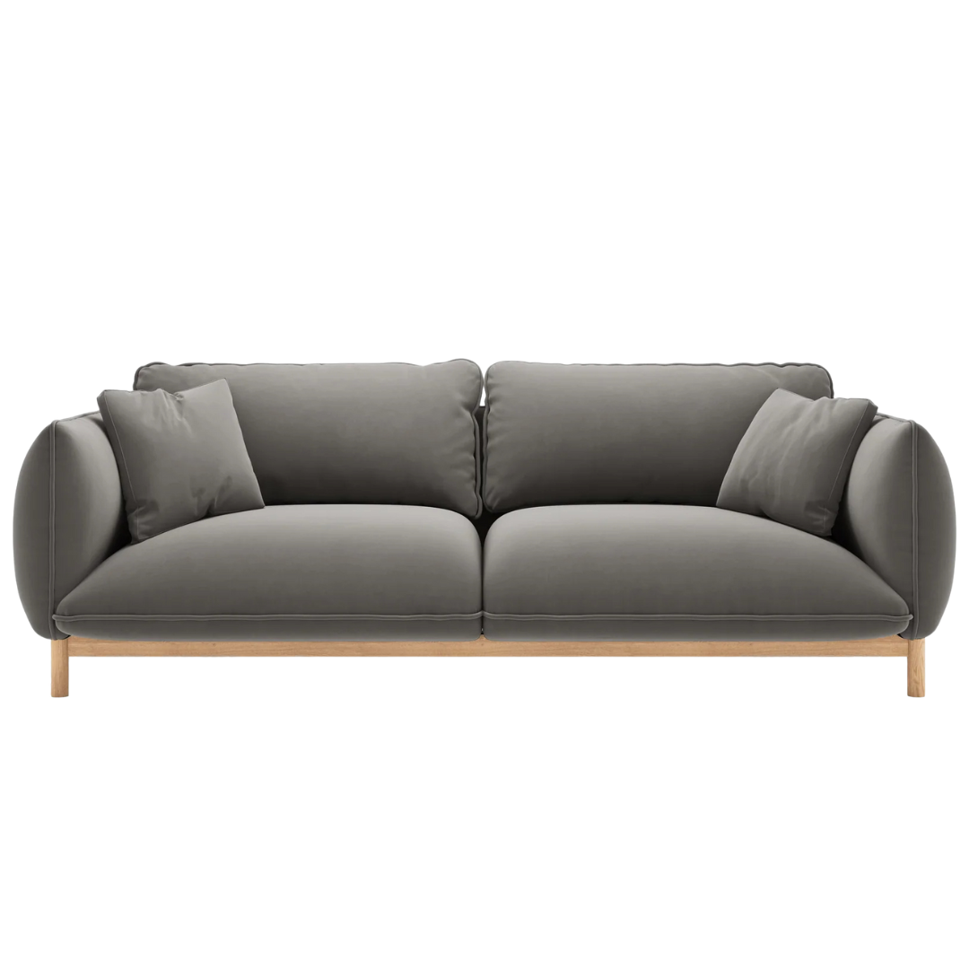 A skandináv stílus ihlette Ada 3 személyes kanapé puha sziluettjét erős fa váz támasztja alá. Kompakt mérete miatt kis helyiségekbe is remekül illeszkedik. Ívelt forma, lekerekített karfákkal, amelyek zökkenőmentesen illeszkednek a háttámlához. A látható fa váz és a díszes díszítésű lábak természetes, kézműves megjelenést kölcsönöznek ennek a bútornak. Gondos odafigyeléssel és minőségre törekedve, megrendelésre gyártják Európában.