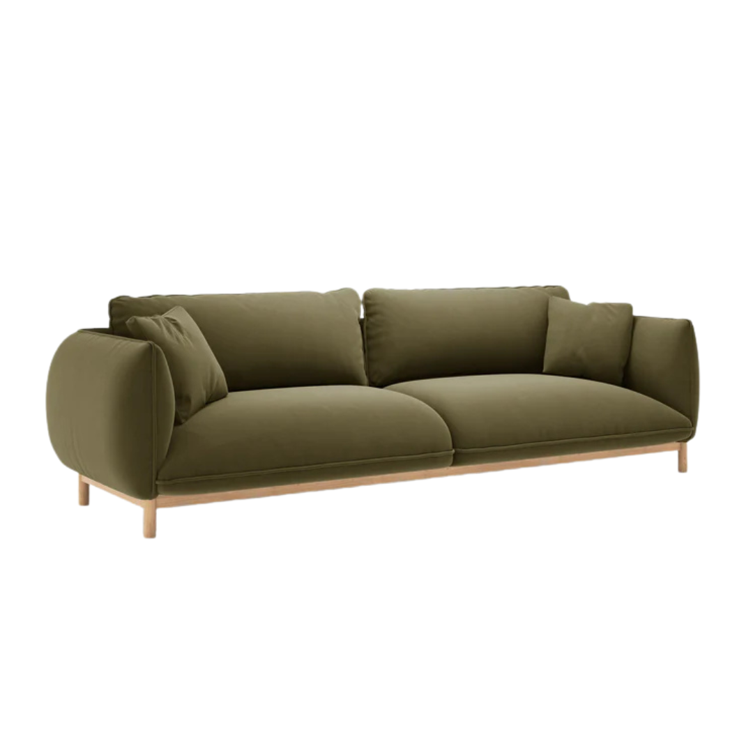 A skandináv stílus ihlette Ada 4 személyes kanapé puha sziluettjét erős fa váz támasztja alá. Kompakt mérete miatt kis helyiségekbe is remekül illeszkedik. Ívelt forma, lekerekített karfákkal, amelyek zökkenőmentesen illeszkednek a háttámlához. A látható fa váz és a díszes díszítésű lábak természetes, kézműves megjelenést kölcsönöznek ennek a bútornak. Gondos odafigyeléssel és minőségre törekedve, megrendelésre gyártják Európában.