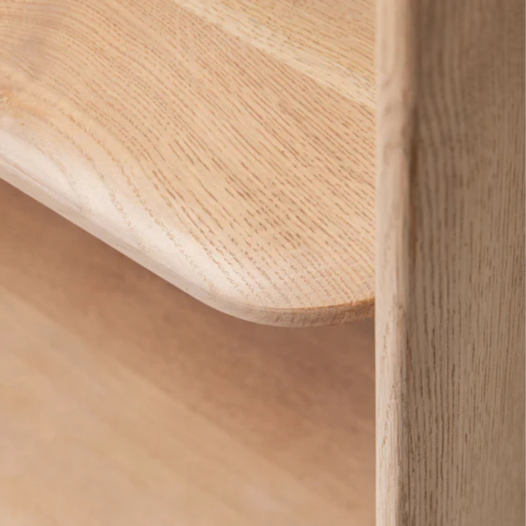 Az Aggie polc az organikus szépséget ötvözi a praktikus tárolással, így ideális kiegészítője bármilyen környezetnek. Tömör tölgyfából készült, könnyed kialakítása a természet hangulatát hozza el a beltérbe, miközben bőséges helyet biztosít könyvek, dekorációk és alapvető dolgok számára. Párosítsd az Aggie kollekció más darabjaival az egységes megjelenés érdekében.