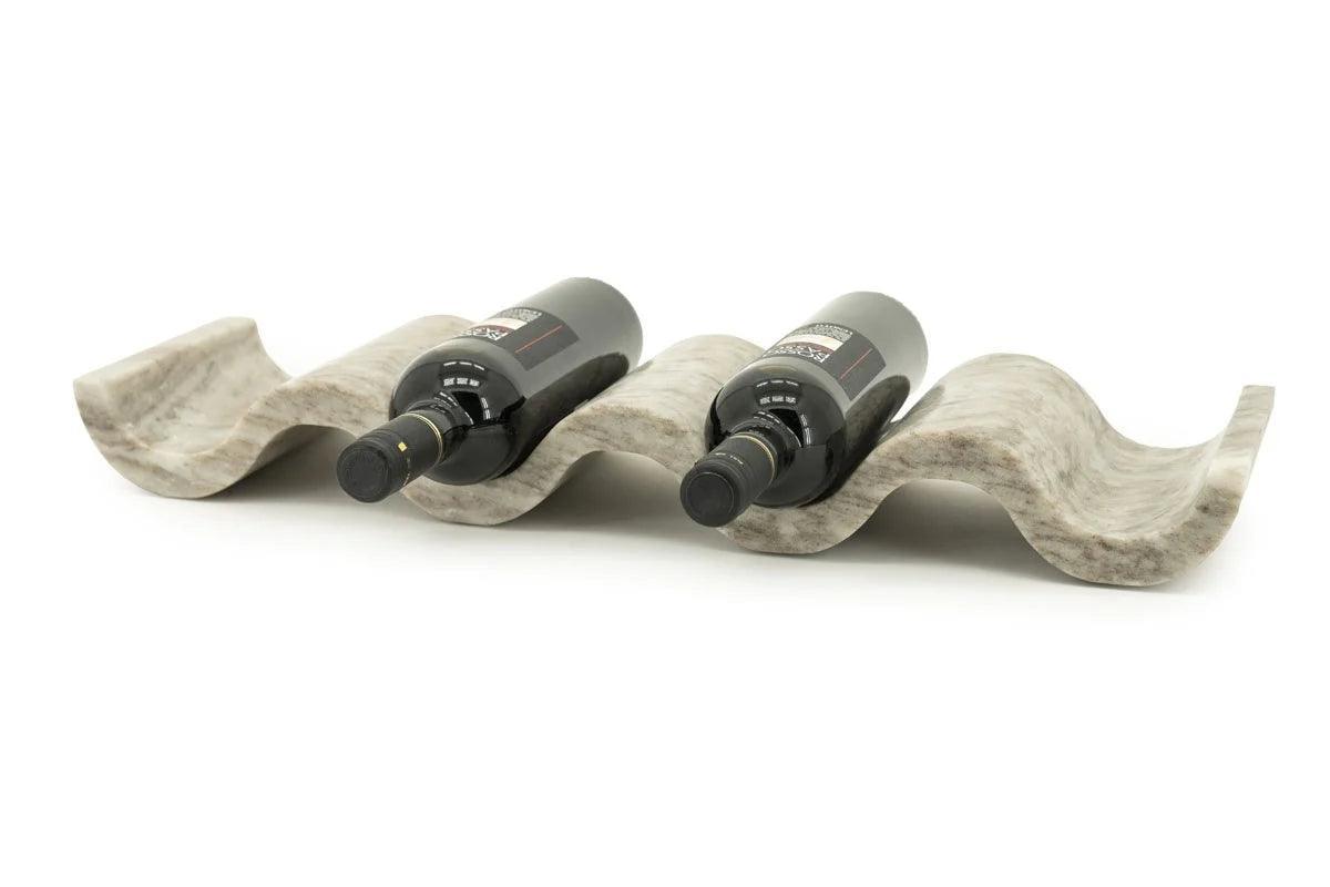 The Airen wine rack will make every wine enthusiast's heart beat faster with its elegance and natural beauty. Thanks to the light brown marble material, each piece boasts a unique veining, making the product a truly special piece for your home. With its wavy appearance, it creates an elegant impression and fits ideally into any modern or classic interior. It can store four bottles, thus offering a practical solution for displaying your wines.