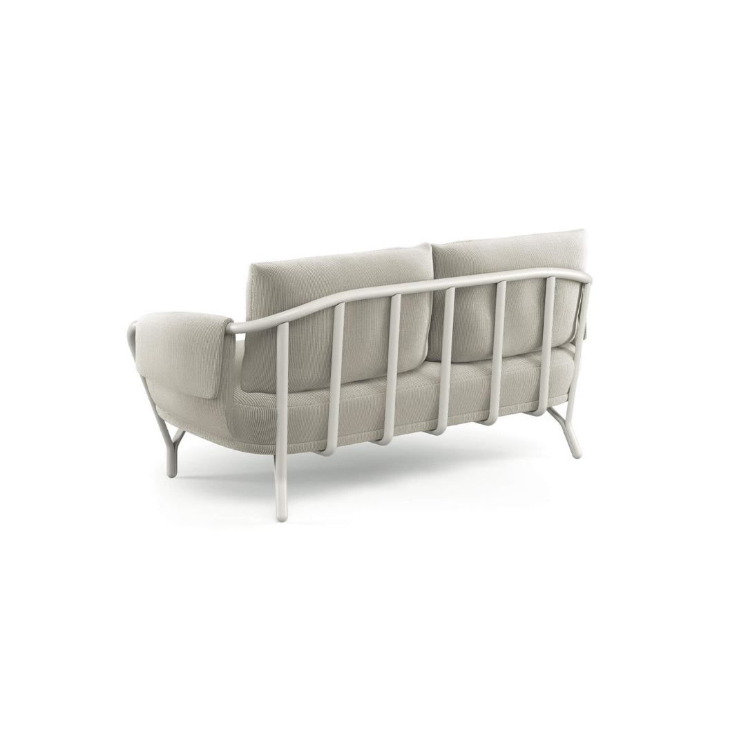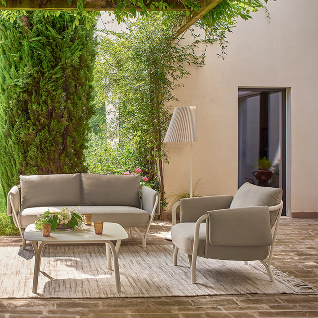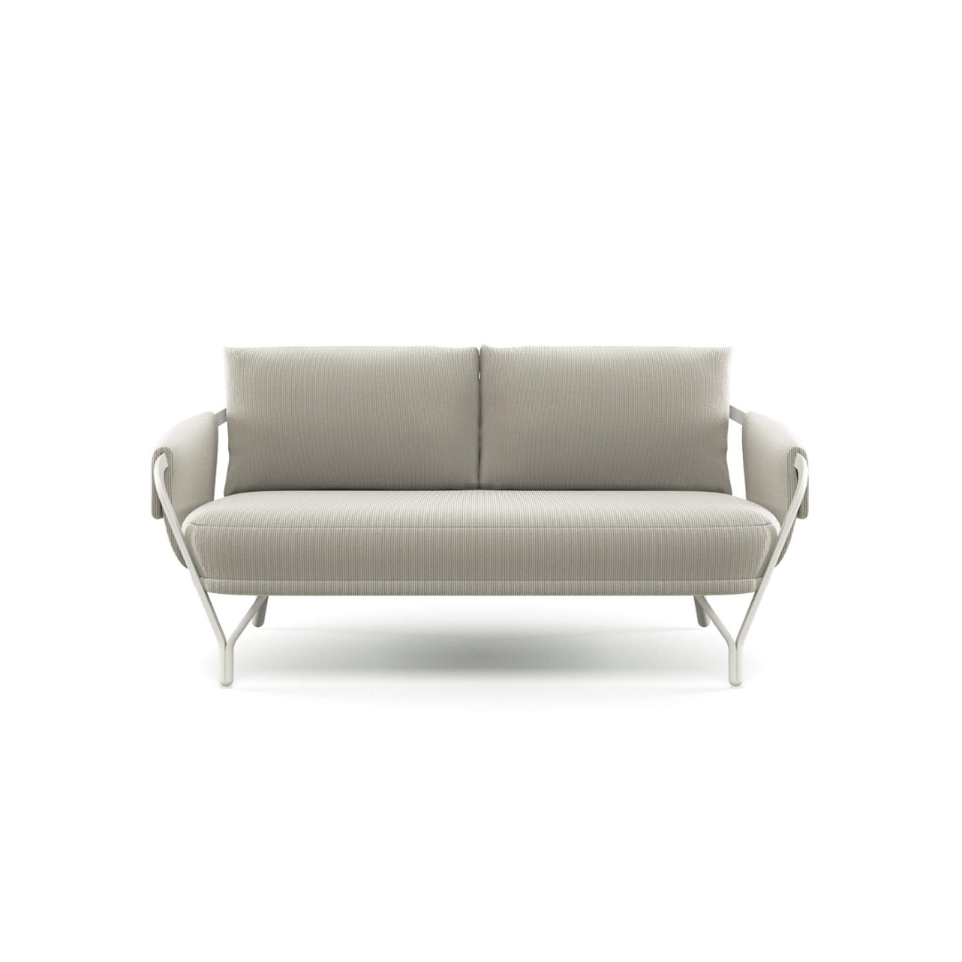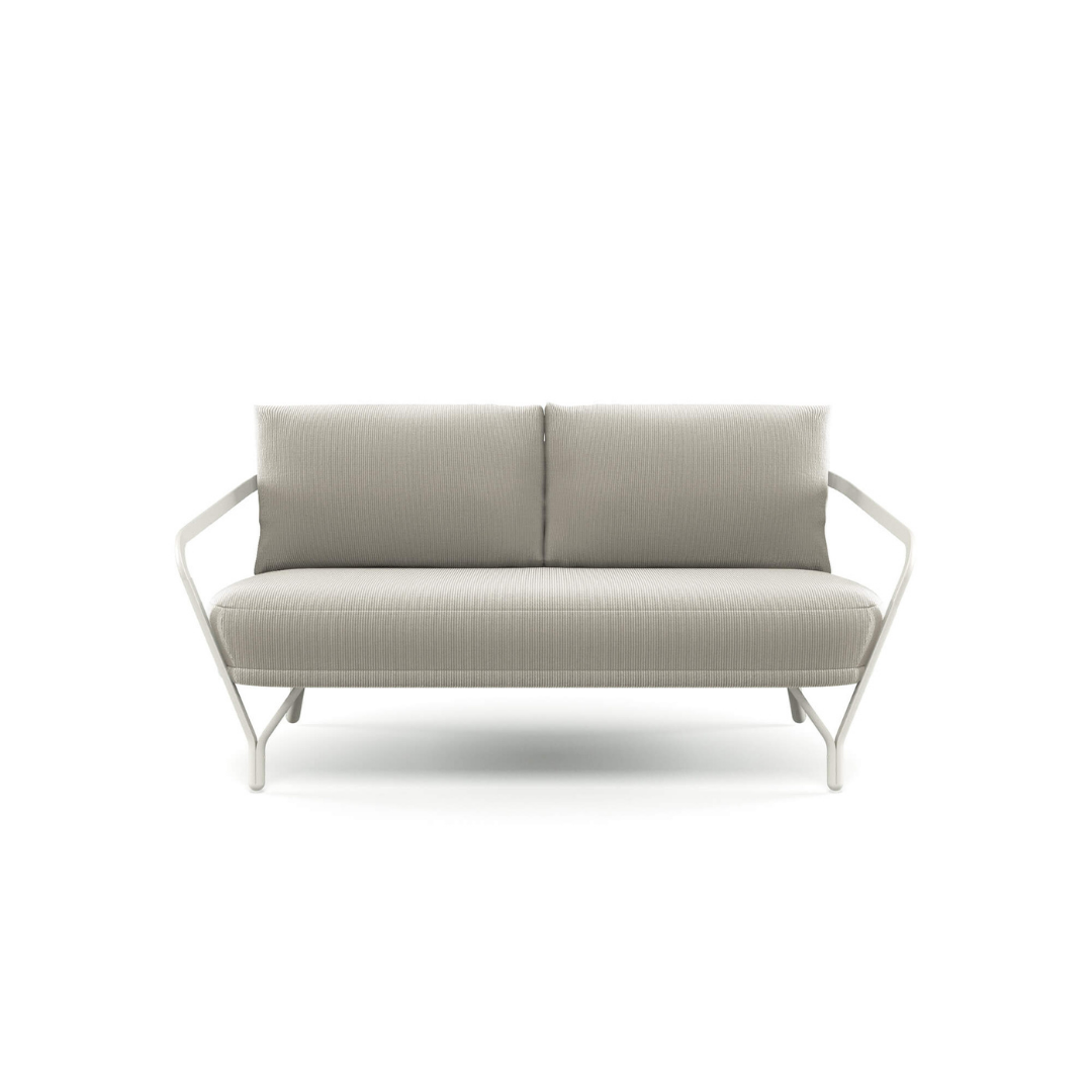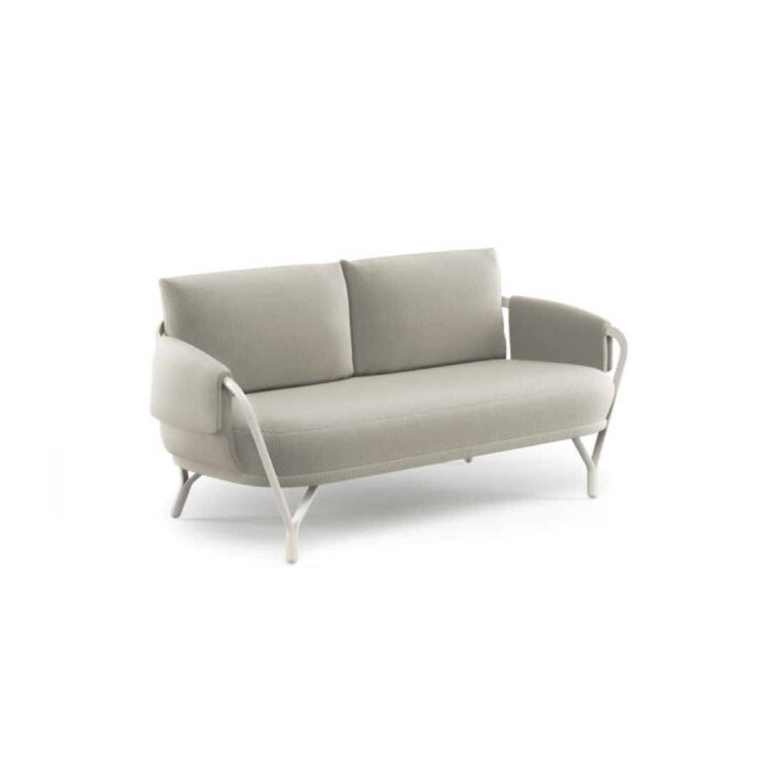 Az Angeletti & Ruzza által tervezett 2 személyes Angel kerti kanapé elérhető a hozzáillő párnákkal, valamint különféle méretű asztalokkal, és étkezőszékkel is. Modern dizájnjával, íves grafikájával, kényelmével és alumínium szerkezetével az Angel tökéletes a kellemes légkör megteremtéséhez bármely kültéri helyszínen.