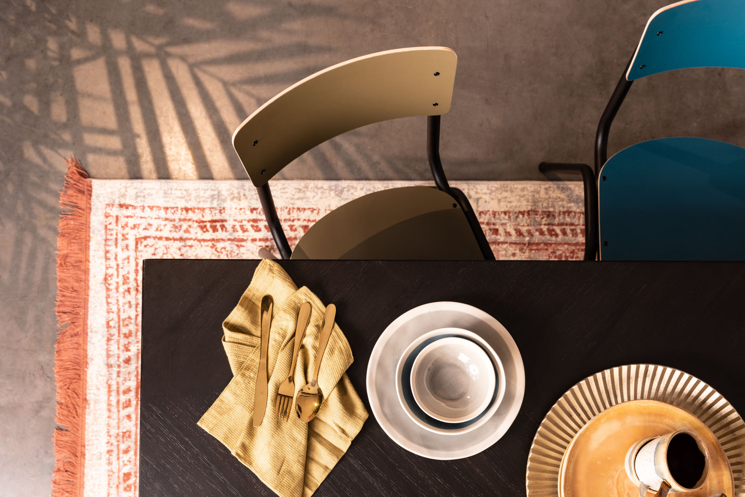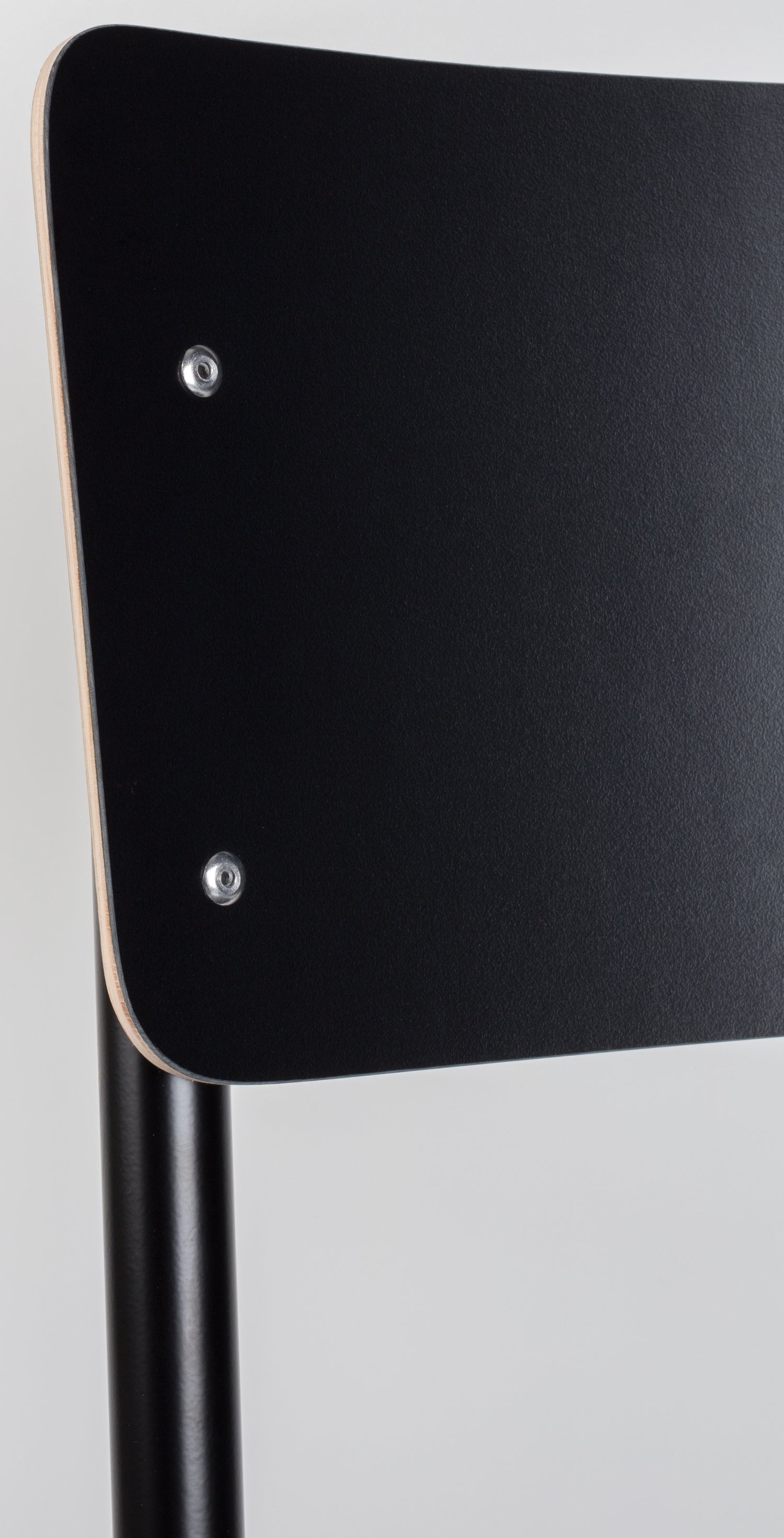 Modern és praktikus választás az otthoni étkezőbe vagy a munkahelyi közösségi területekre. Az ülőlap és háttámla festett rétegelt lemezből készült, amelyet HPL bevonattal láttak el, így strapabíró és könnyen tisztítható. A váz matt fekete porfestett fémből készült, ami tartósságot és stabilitást biztosít. Hétféle színben elérhető.