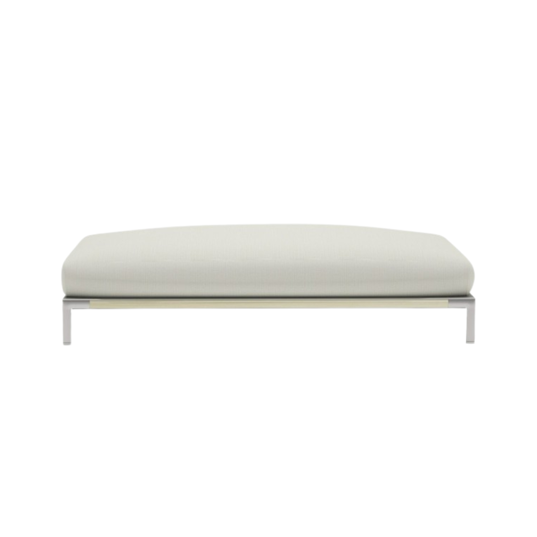 Bring comfort and style to your outdoor space with the Baia garden pouf. This modern rectangular pouf will add a cozy and decorative touch to your garden, patio or balcony. The seat is available in 4 different upholstery options, making it a cozy piece for relaxing outdoors. Made of durable, weather-resistant fabric, teak wood and metal, the pouf is ideal for outdoor use while remaining soft and comfortable. Whether used as a footrest, extra seating or a decorative element, it combines functionality with a fresh, natural style. Seat diameter: 90x90 / 150x90 / 210x90 cm. Available in different finishes.