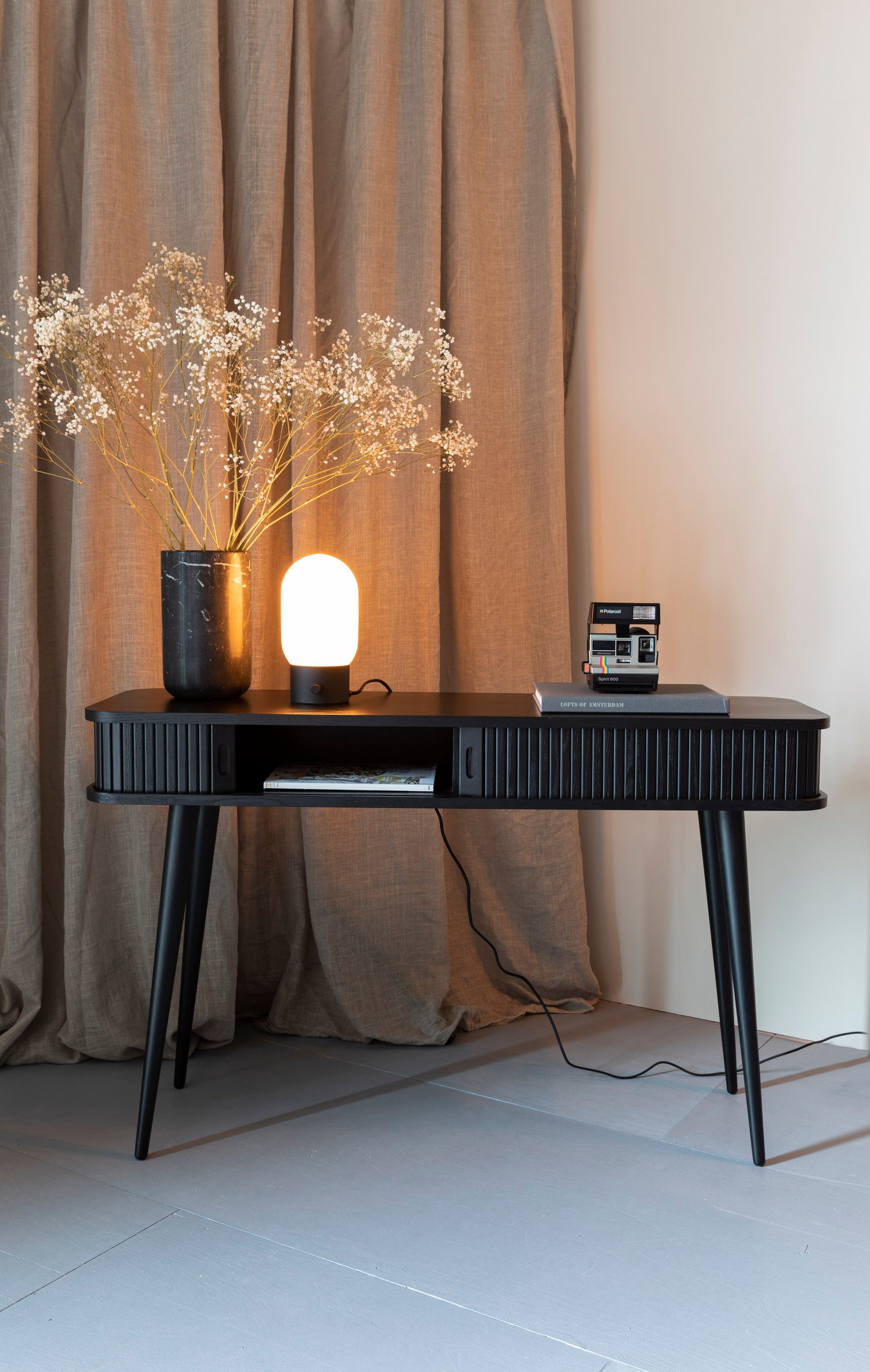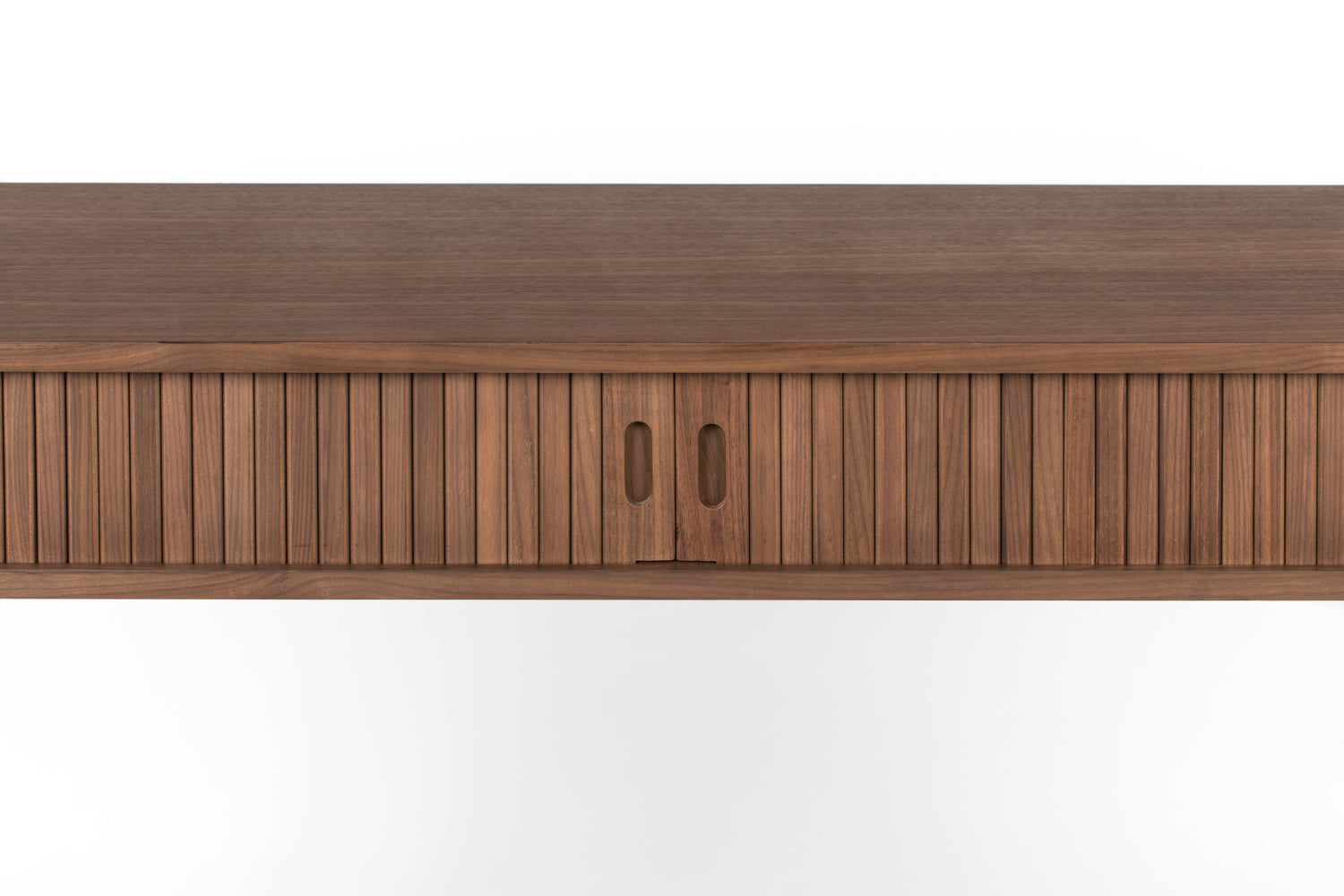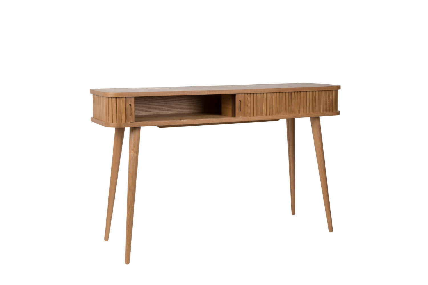 One of the best-selling collections from the Zuiver brand is undoubtedly Barbier. This console table is the perfect choice to show off your favorite accessories in your home, while hiding anything you want behind the sliding doors. The thickness of the table top and the solid wood legs ensure stability and durability, while the sliding doors allow for a neat and tidy look. The walnut veneer and lacquered solid wood give this console table an elegant look that will fit perfectly into any interior.