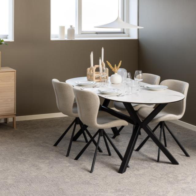 A Batilda étkezőszék könnyedén egyensúlyba hozza a stílust, a kényelmet és a praktikumot. A puha szövettel kárpitozott felület komfortos ülésélményt biztosít. A fekete acél forgótalppal kombinálva a letisztult kialakítással ellátott szék minden étkezőhelyiséget modern esztétikával áraszt el.