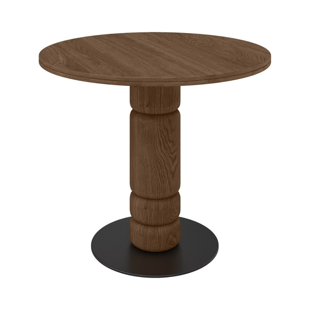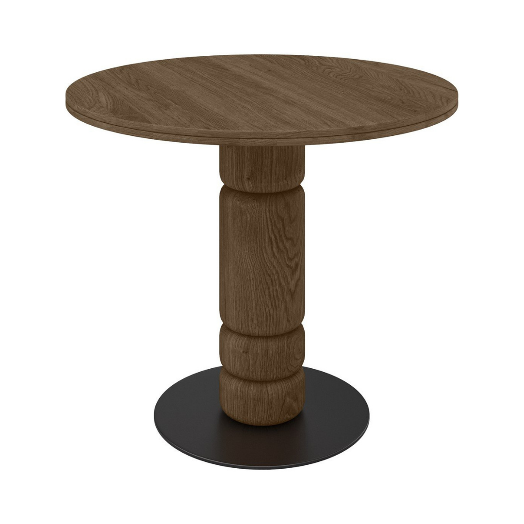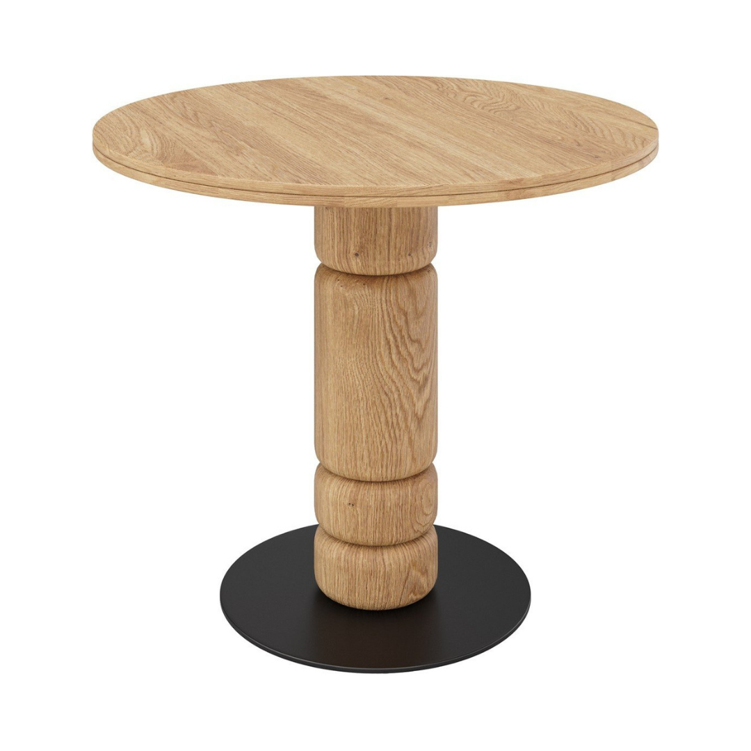 The Beads dining table is a stylish piece of furniture that will be a perfect addition to any classic or modern interior. The natural oak table top and carved legs add elegance and natural beauty to the space. The black metal base not only adds aesthetic value, but also ensures stability and durability. With a diameter of 90 cm, it is an ideal choice for smaller dining rooms or kitchens.