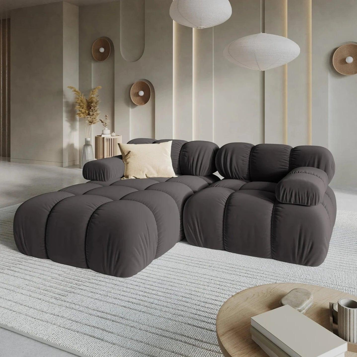 The modern and unique Bellis corner sofa is the perfect addition to your living room. Inspired by the innovative design of the 70s, this piece of furniture combines striking silhouettes with comfort. It exudes an inviting coziness, while the soft velvet cover provides a delightful combination of softness and comfort. Available in thirteen different colors and a right-handed version, you can easily find the one that suits you best.