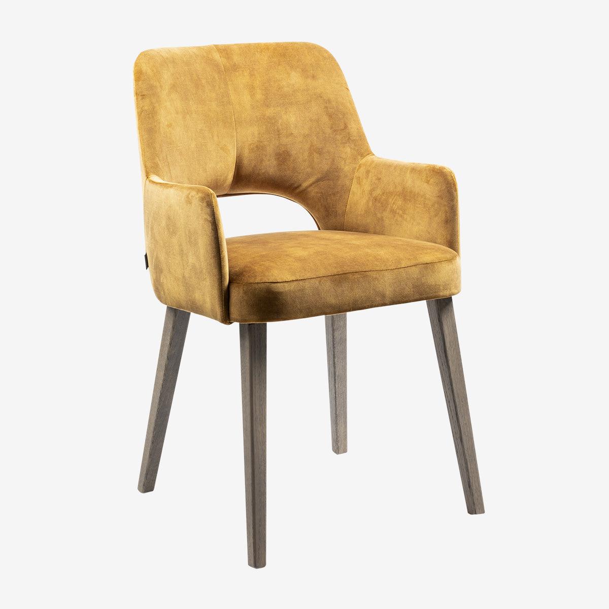 A Buco egy modern és minimalista megjelenésű szék, amely nyitott háttámlával, és fotel szerű kialakítással rendelkezik. A több mint 700 féle szín-, és anyag variációnak köszönhetően teljes mértékben a saját stílusodhoz alakíthatod. Fa váza a tartósságot, míg többrétegű szivacsai a kényelmet biztosítják. A képen látható Buco modell elegáns Adore gold 132 szövettel van kárpitozva.