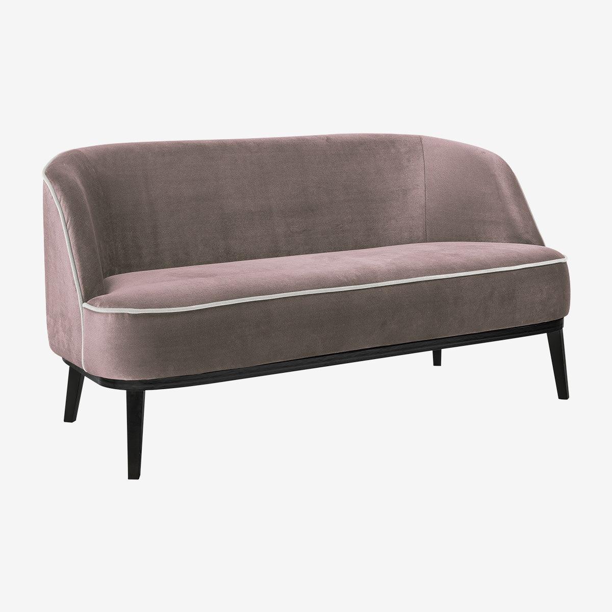 A Cabana egy elegáns kanapé, mely kétféle méretben kapható. 120x72x76 cm-es, és 150x72x76 cm-es változatai miatt könnyedén elhelyezhető kisebb vagy nagyobb helyiségekben is. Íves háttámlája és puha ülése maximális kényelemet garantál. Az erős fa váz, és lábak tartást valamint stabilitást biztosítanak. Nagy szín-, és anyag választékának köszönhetően könnyedén illeszkedik minden enteriőrbe. A képen látható Cabana kanapé kontrasztos szegéllyel, bársony kárpitozással, és fekete lábbal készült.