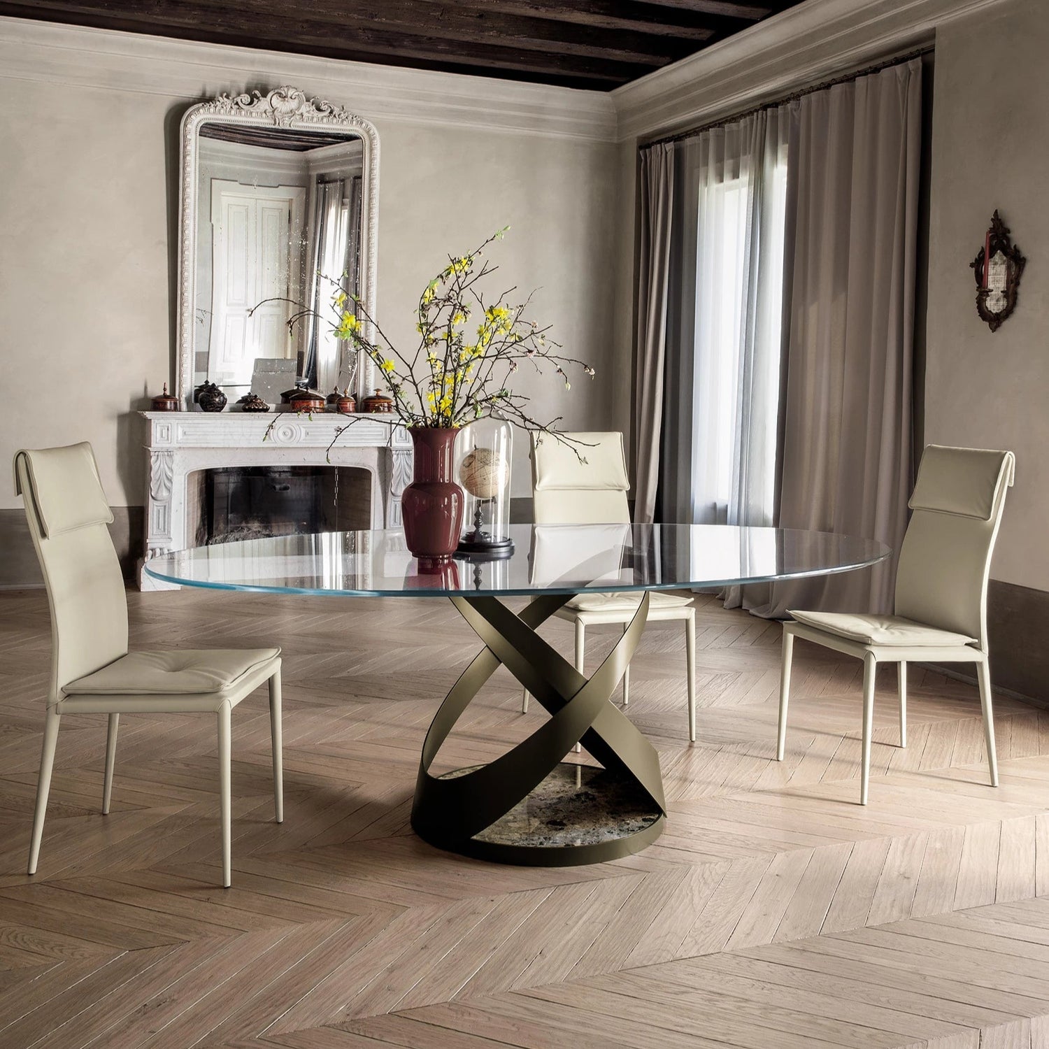 The strength of the metal structure is combined with the elegant marble legs and the fixed glass top, making Capri a symbol of the essence of Italy. Enriched with discreet luxury, brilliant and refined, it represents care, precision and dedication. Materials and technique, nature and innovation once again aim to create an exceptionally balanced product. Available sizes: Ø140x75 / Ø160x75 / Ø180x75 / 120x220x75 cm.