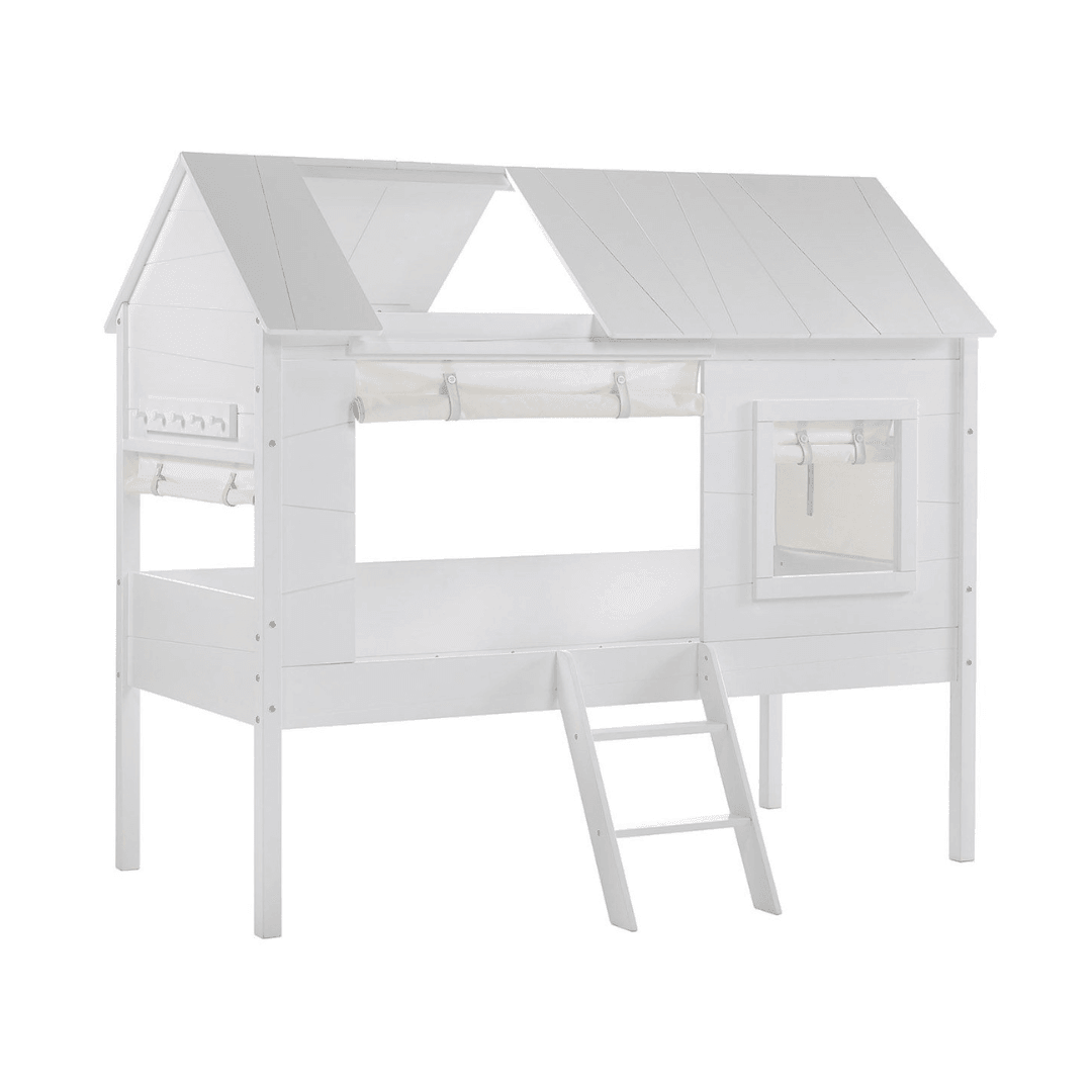 The Charlotte cottage bed is a piece of furniture made of solid pine that brings an outdoor atmosphere to the child's room. Its design resembles a small guesthouse, which can be freely decorated, so it can easily fit into any style of interior. It is also available in light gray and white lacquer. This product also includes a Charlotte fabric set, which can be used to complete the openings to make the bed even more cozy. It can be used with a 90x200 cm bed slat and a mattress of a similar size. The bed slat and mattress are not included.