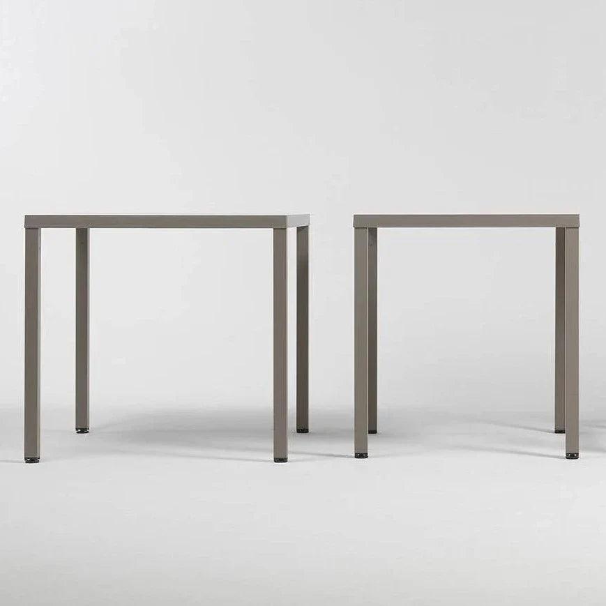 Cube is a solid, minimalist professional table made of synthetic resin with a square DurelTop surface. It is an innovative new system in the manufacture of table tops, developed to achieve the highest levels of practicality, resistance and elegance. It also has an aluminum structure that gives it strength and robustness. Square legs in lacquered aluminum. Available in two sizes and four colors.