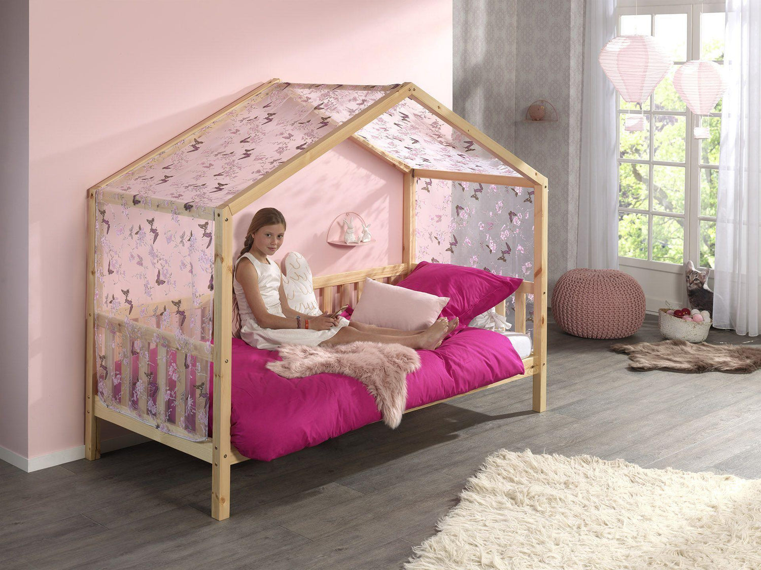 Vipack presents the Dallas children's bed collection, one of which is this characteristic piece of furniture. The garden house appearance makes the room really cozy, which includes a translucent pink material with a butterfly pattern. The roof frame can be decorated with this, and also with string lights, lanterns, or even toys. The furniture made of solid pine is available in three colors, and the product also includes a 90x200 cm bed frame. It is available in natural and white colors. The mattress and other decorations are not included.