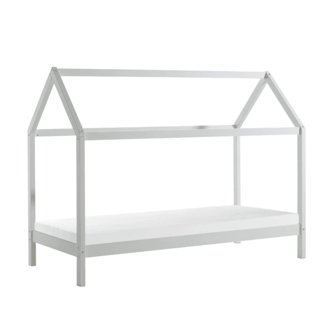 The Dallas LP90 children's bed is a minimalist-looking piece of furniture that includes a roof frame, a bed slat, and a 90x200x10cm soft mattress. Its practical design makes it space-saving, yet a trendy piece of furniture. Available in natural and white, it easily fits into any interior. It can be personalized with lights, fabrics, or toys.