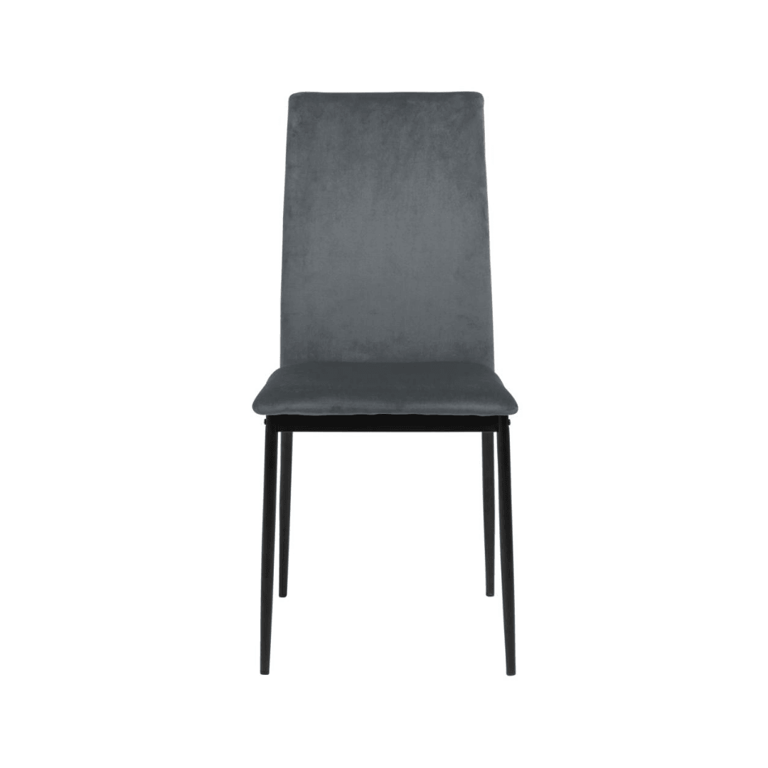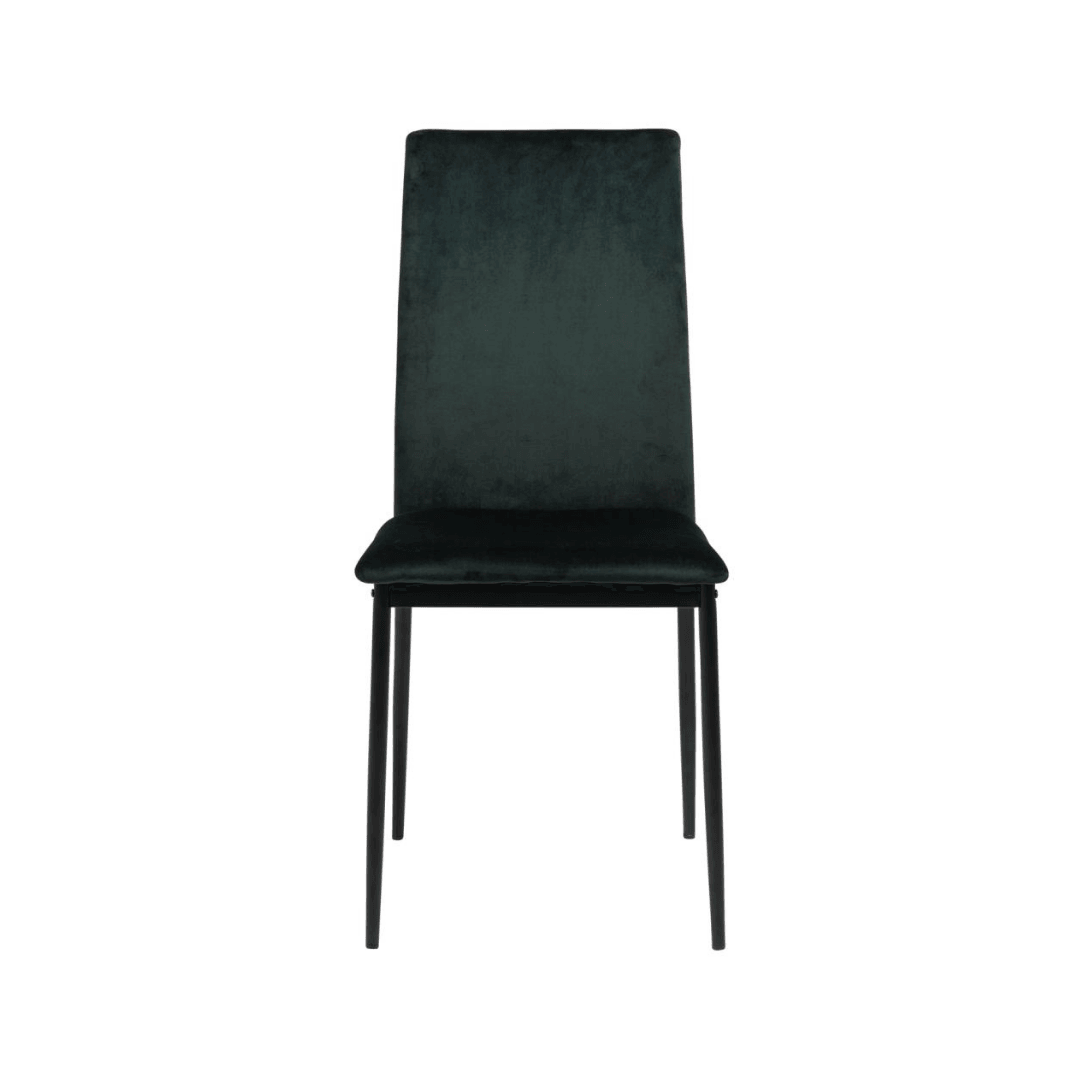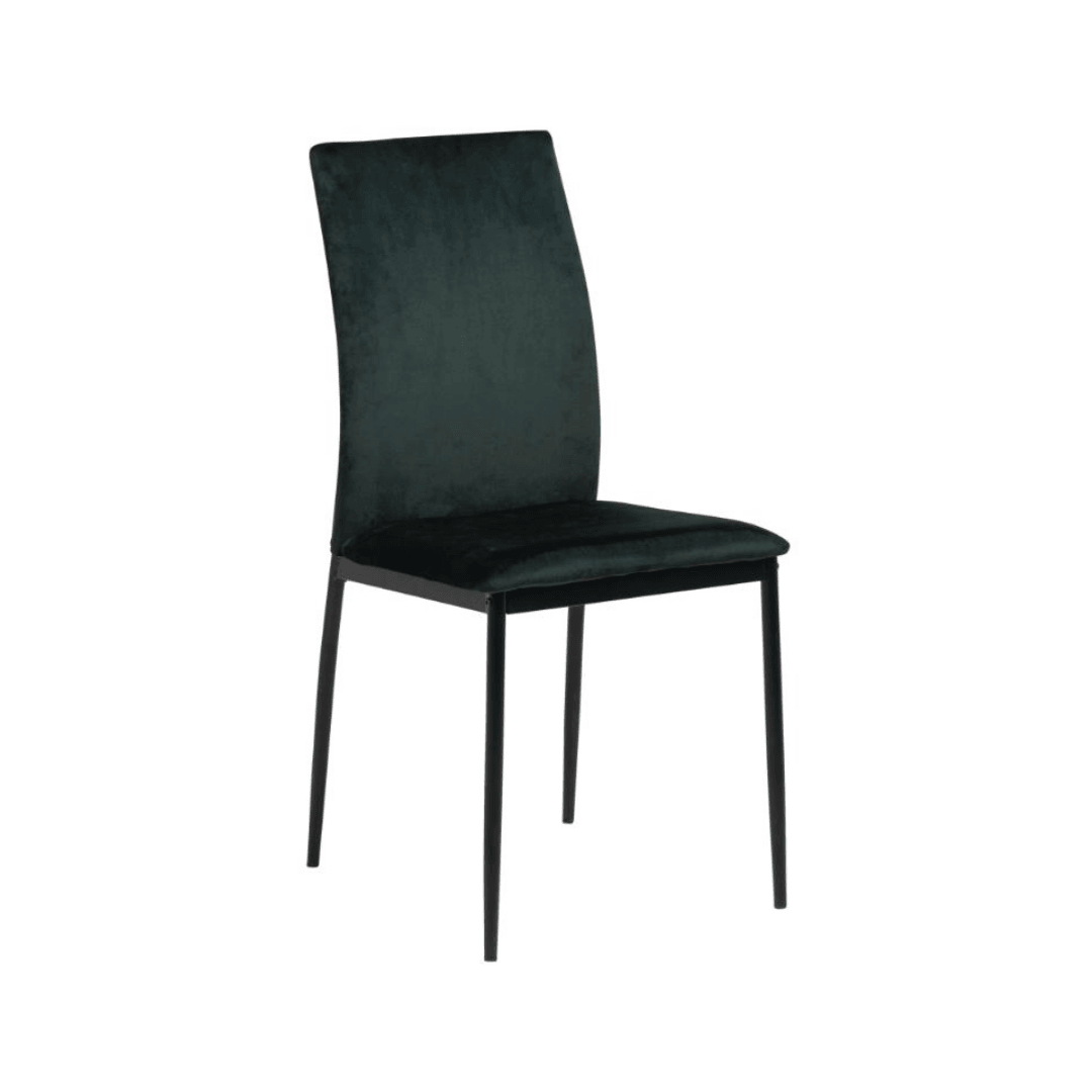 A letisztult vonalvezetésű minimalista dizájn kulcsfontosságú jellemzője a Demina étkezőszéknek, amelynek vékony fekete fémlábai porszórt bevonattal vannak kiegészítve. Ez a megjelenés elegáns és modern, így könnyedén illeszkedik minden belső térbe. A bársony szövettel rendelkező Demina fekete, sötétszürke, sötétkék, és sötétzöld színekbe érhető el.