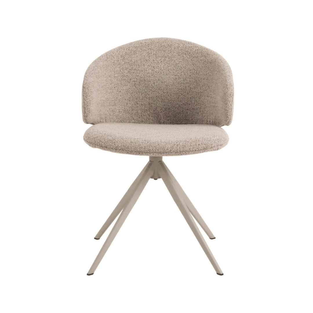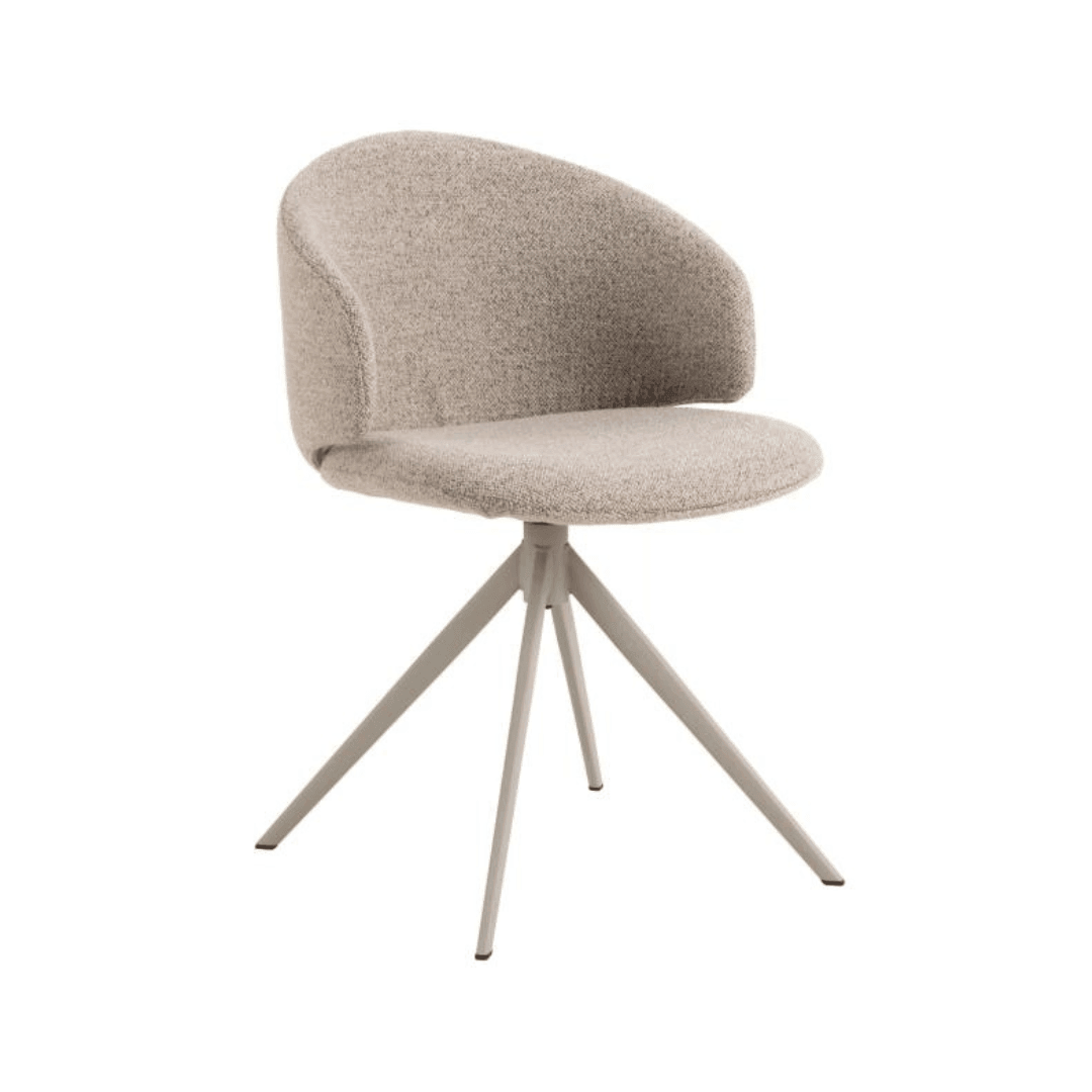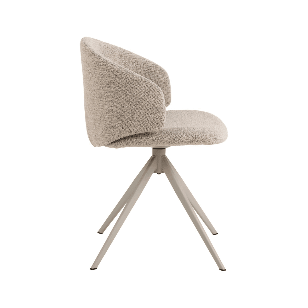 The modern Ella dining chair is a perfect choice for a stylish dining room. The round seat has a delicate cut that provides a comfortable seating surface. The chair is upholstered in a beige bouclé cover that gives it an elegant look. The swivel function allows for easier movement, so you can easily adjust the position to suit you. The steel base is not only a design element, but also ensures the stability of the chair.