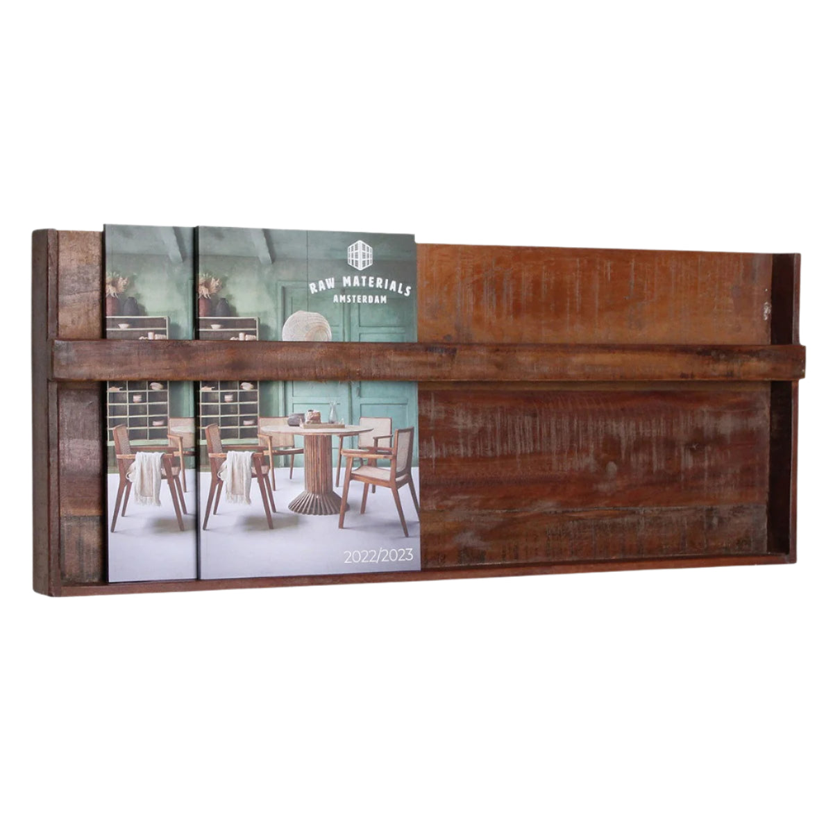 Fából készült magazintartó polc a Factory kollekcióból. Ezentúl könnyen rendszerezheted vagy szem előtt tarthatod kedvenc magazinjaidat és könyveidet vagy egyéb tárgyaidat ennek a polcnak a segítségével, ami tökéletesen illik rusztikus stílusban berendezett terekbe. A Factory fa kollekció 100%-ban újrahasznosított fából készült. A fa régi házakból származik, amelyek lebontott, elhagyott gyárakból származnak, a padlódeszkákból, fali panelekből és tetőszerkezetekből származik. A fa a hosszú évek használatából adódóan sötétebb árnyalattal rendelkezik.