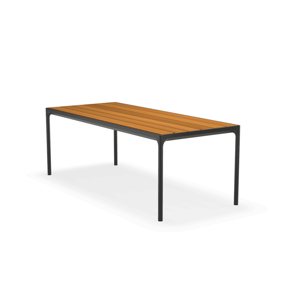 The Four garden table is a simple yet stylish piece of furniture that comfortably seats a small group. The table top is made of bamboo slats, which gives it a natural look and ensures durability. The legs provide stability to the table, making it an ideal choice for any garden dining area or terrace.
