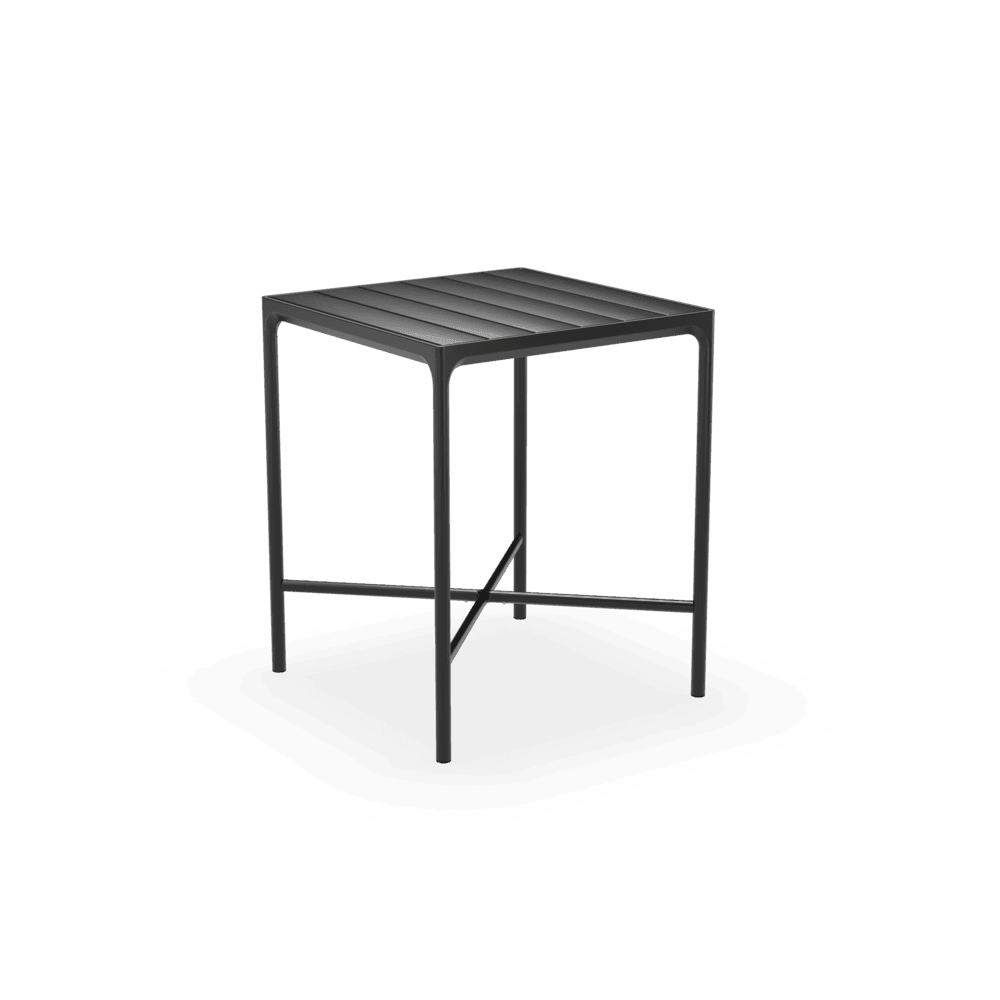 The Four garden bar table is a simple yet stylish piece of furniture that comfortably seats 4 people. The table top is made of black aluminum slats, which gives it an elegant look and guarantees durability. The legs provide stability to the table, making it an ideal choice for any part of the garden or terrace.