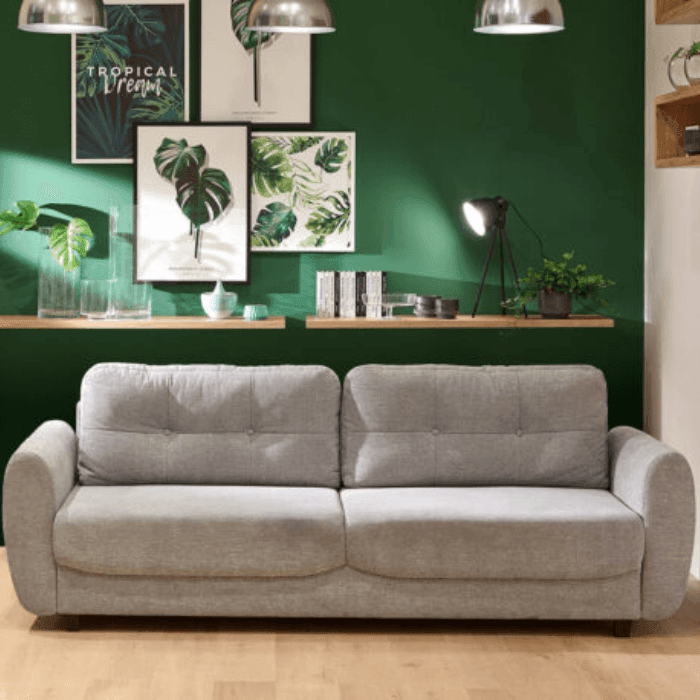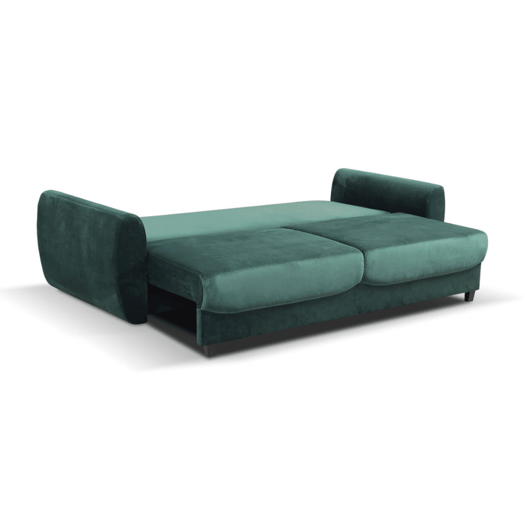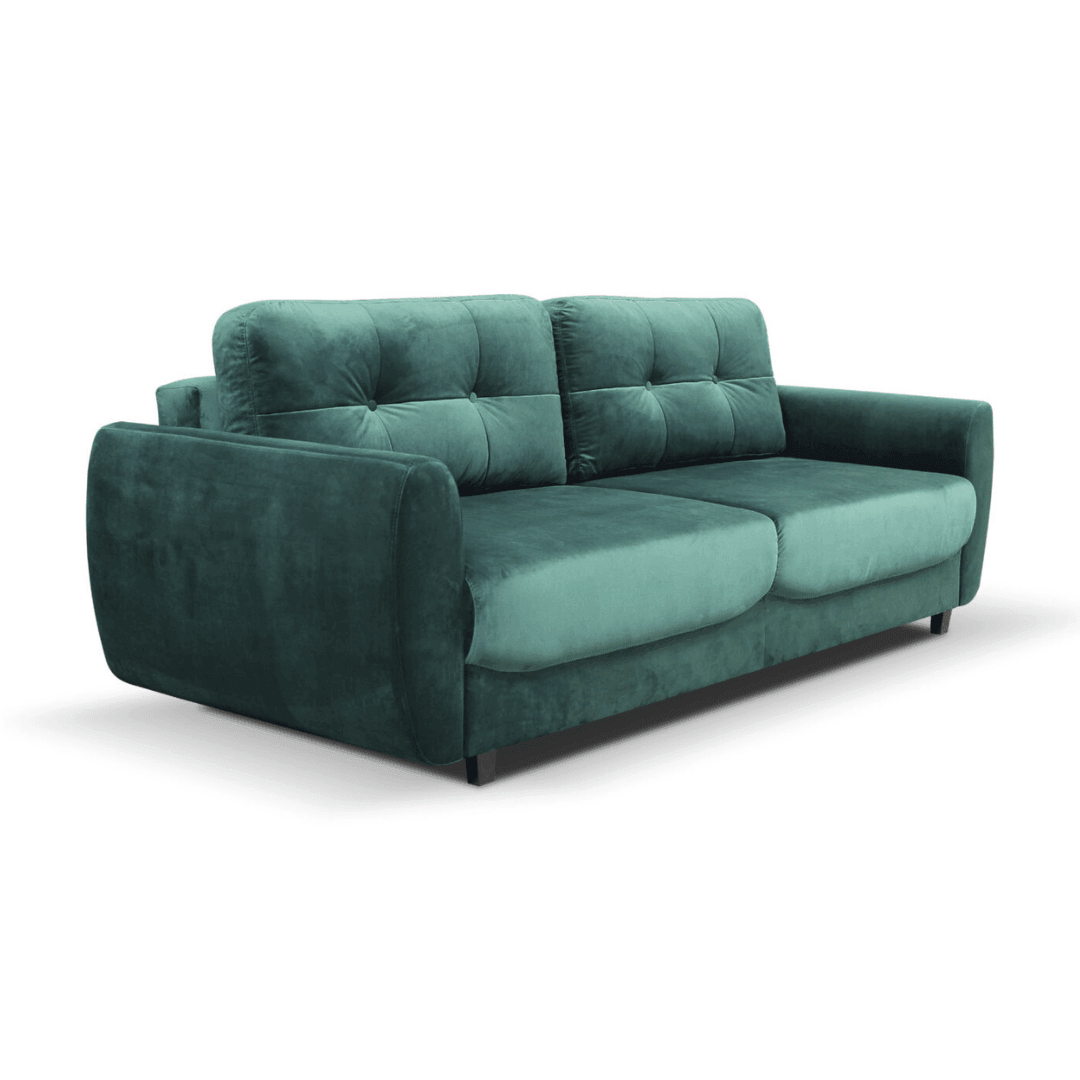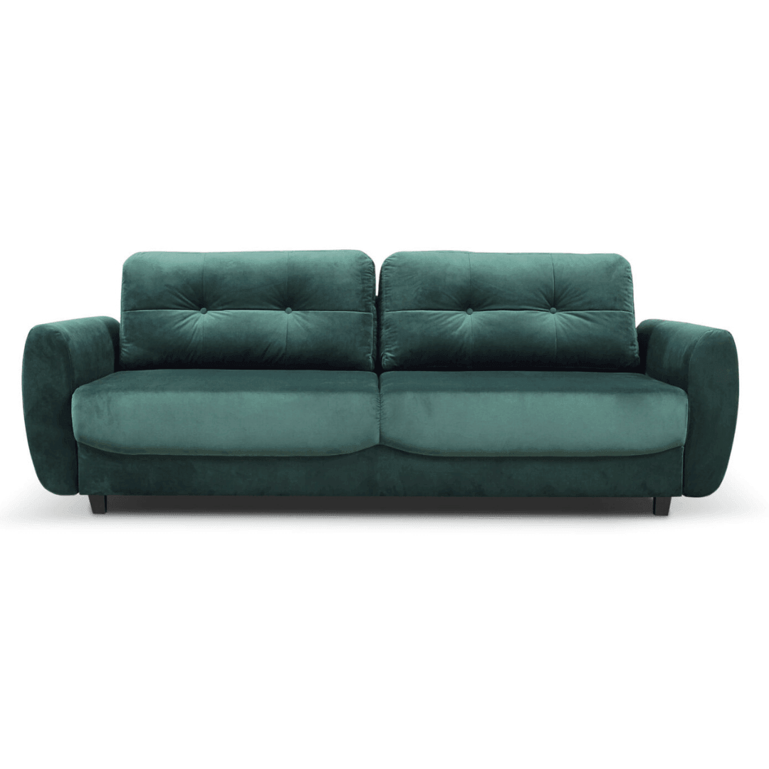 The Hampton sofa brings a touch of retro luxury to your living room, evoking the unique atmosphere of 90s apartments. This model is characterized by its stylish armrests, backrest and seat. The sofa with a sleeping function is equipped with a folding mechanism, so it can be quickly transformed into a double bed. Evenly distributed wave springs and highly resilient foam fill the seat and backrest, allowing you to relax comfortably. You can store blankets and pillows in the linen holder, keeping the room tidy.