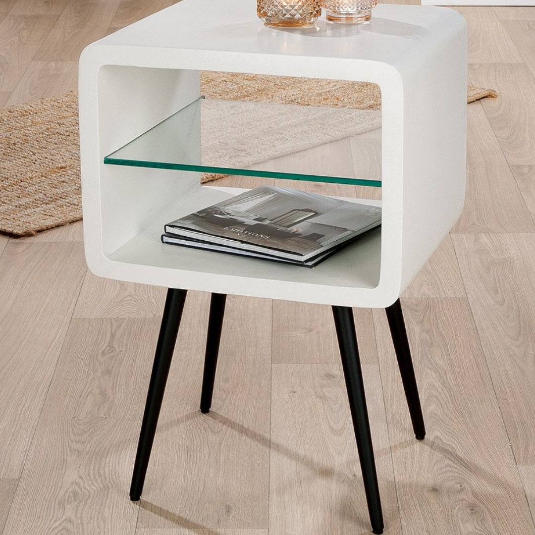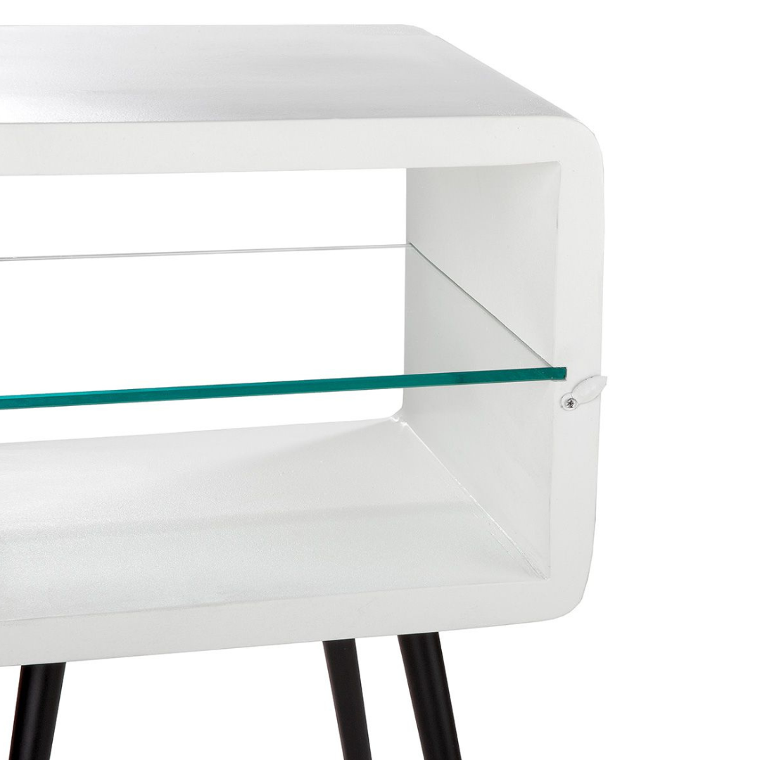 Az Iron egy minimalista és modern éjjeliszekrény, amelyet úgy terveztek, hogy bármilyen térben fiatalos hatást keltsen. A letisztult fehér színű festés és a nyitott részletek izgalmas jelleget kölcsönöznek ennek a bútordarabnak. Üvegből készült asztallapja egyedi csavart kölcsönöz a minimalista dizájnnak és ez a legies megjelenés ideálissá teszi kisebb alapterületű hálószobákba.