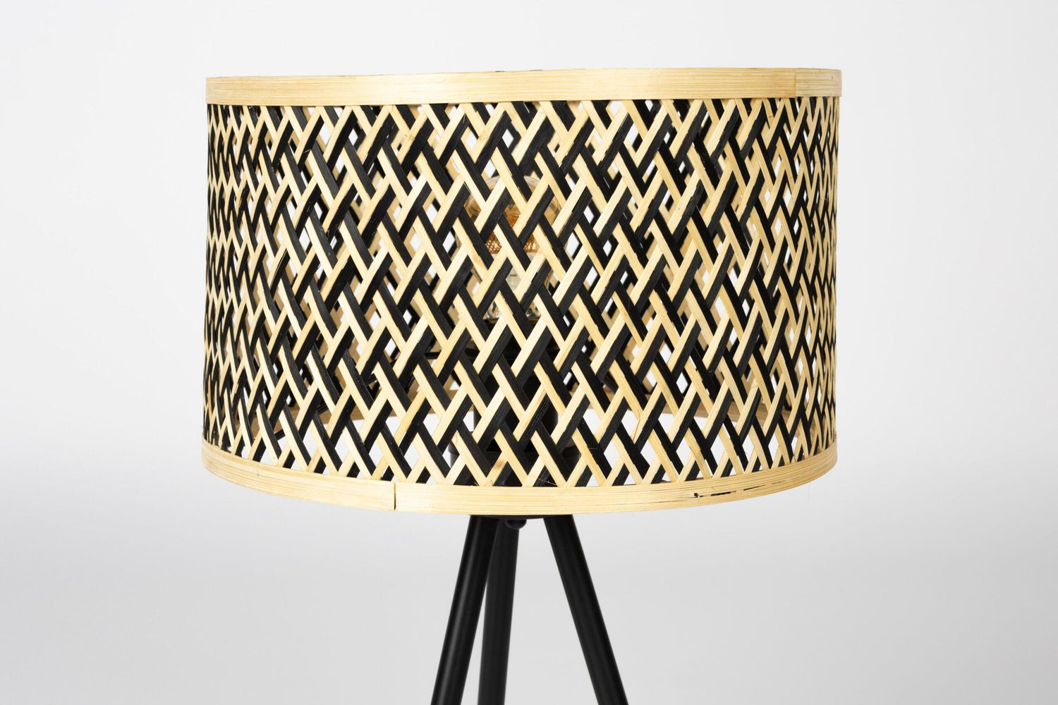 - Lampshade material: black and natural bamboo