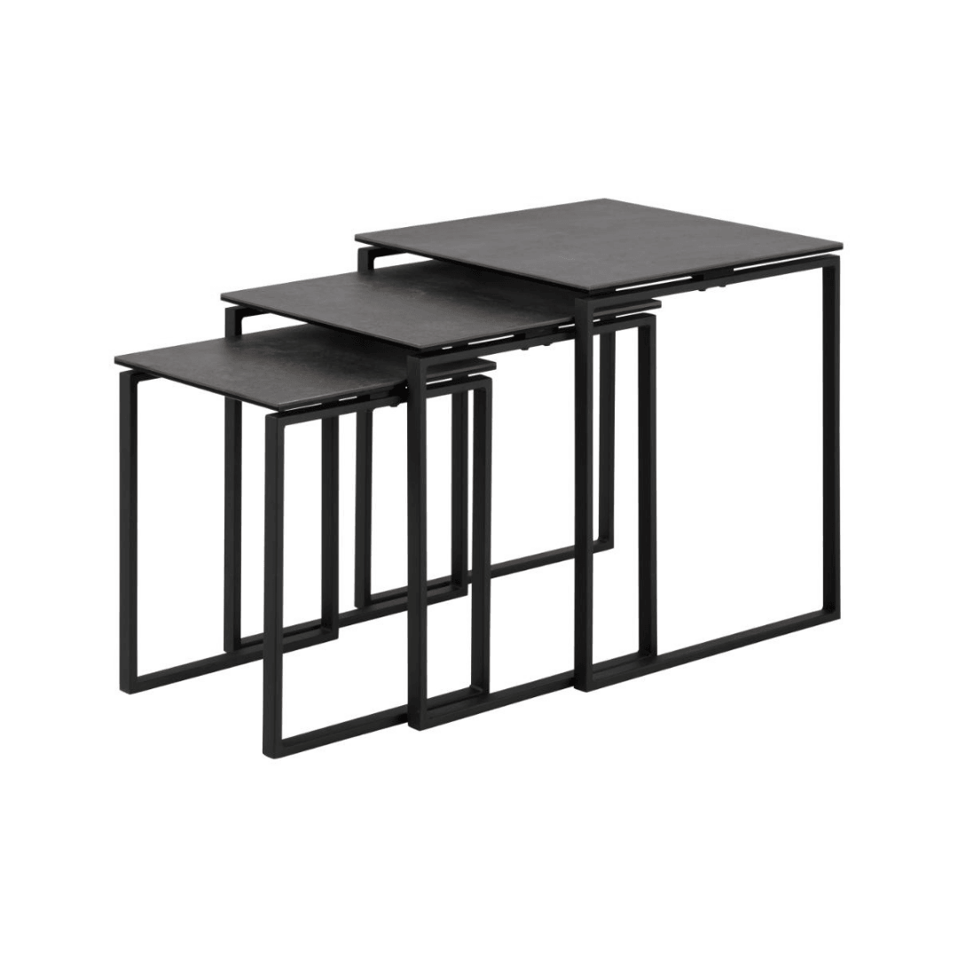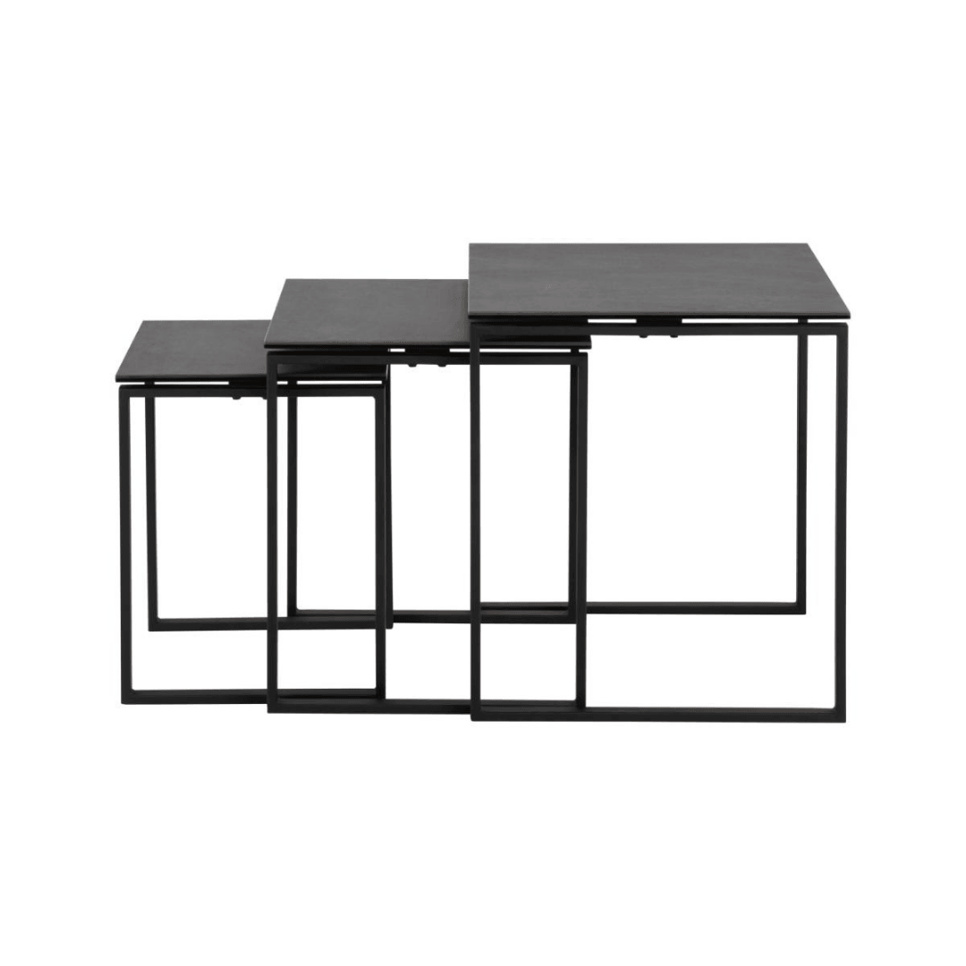 The Katrine three-piece storage table set is a modern and stylish addition to any room. You can use them together or separately. The combination of the elegant ceramic table top and the black metal frame gives it an exclusive look.