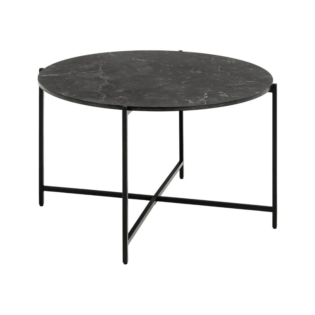 If you like minimalist but unique furniture, then the Lamoine coffee table is guaranteed to please you. This model brings a calm feeling to your home with its round, black marble-look metal table top. The thin steel base provides stability and a light, modern effect, making it a great fit for any style of living room. Also available as a side table.