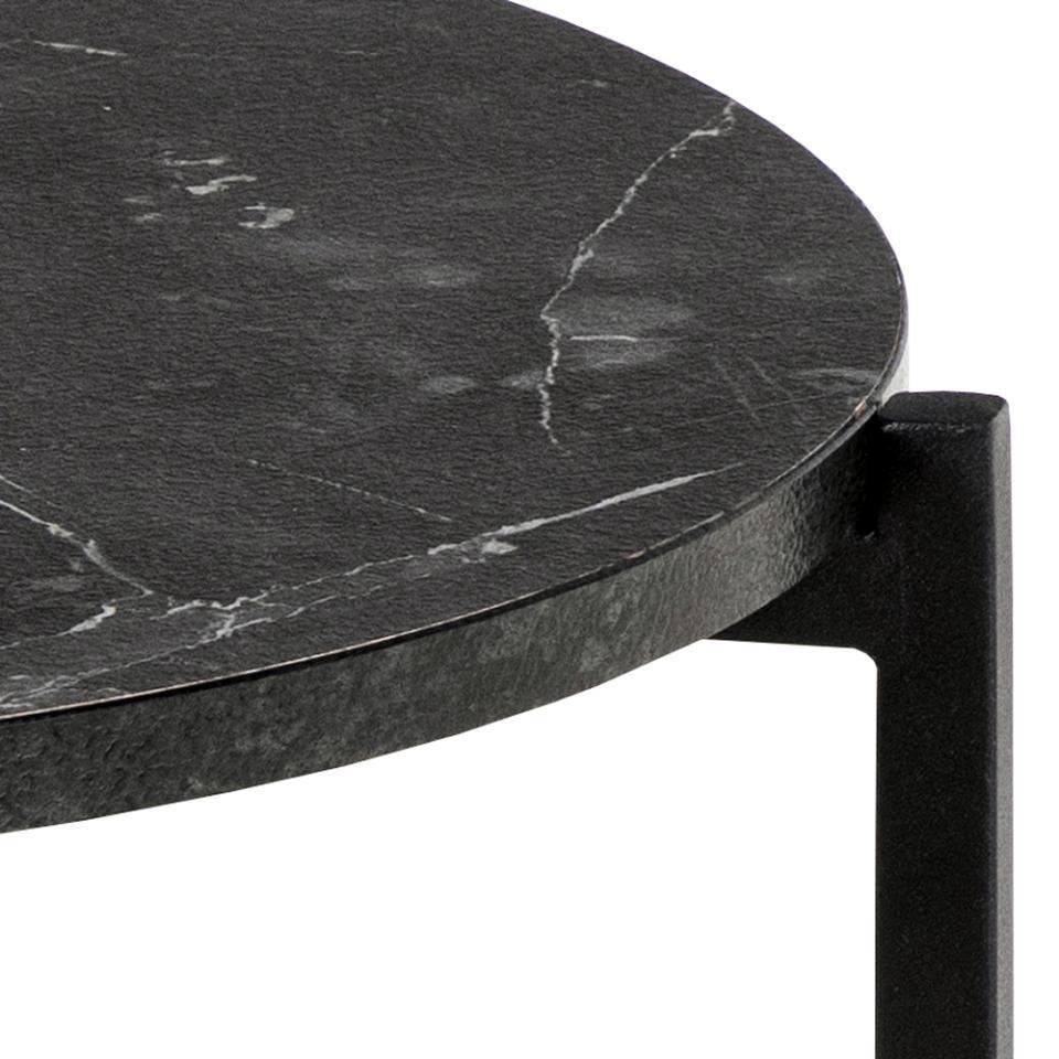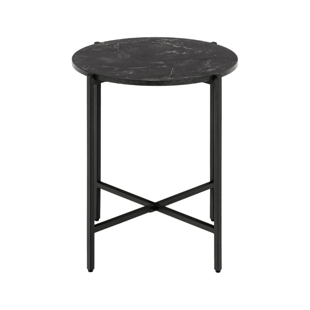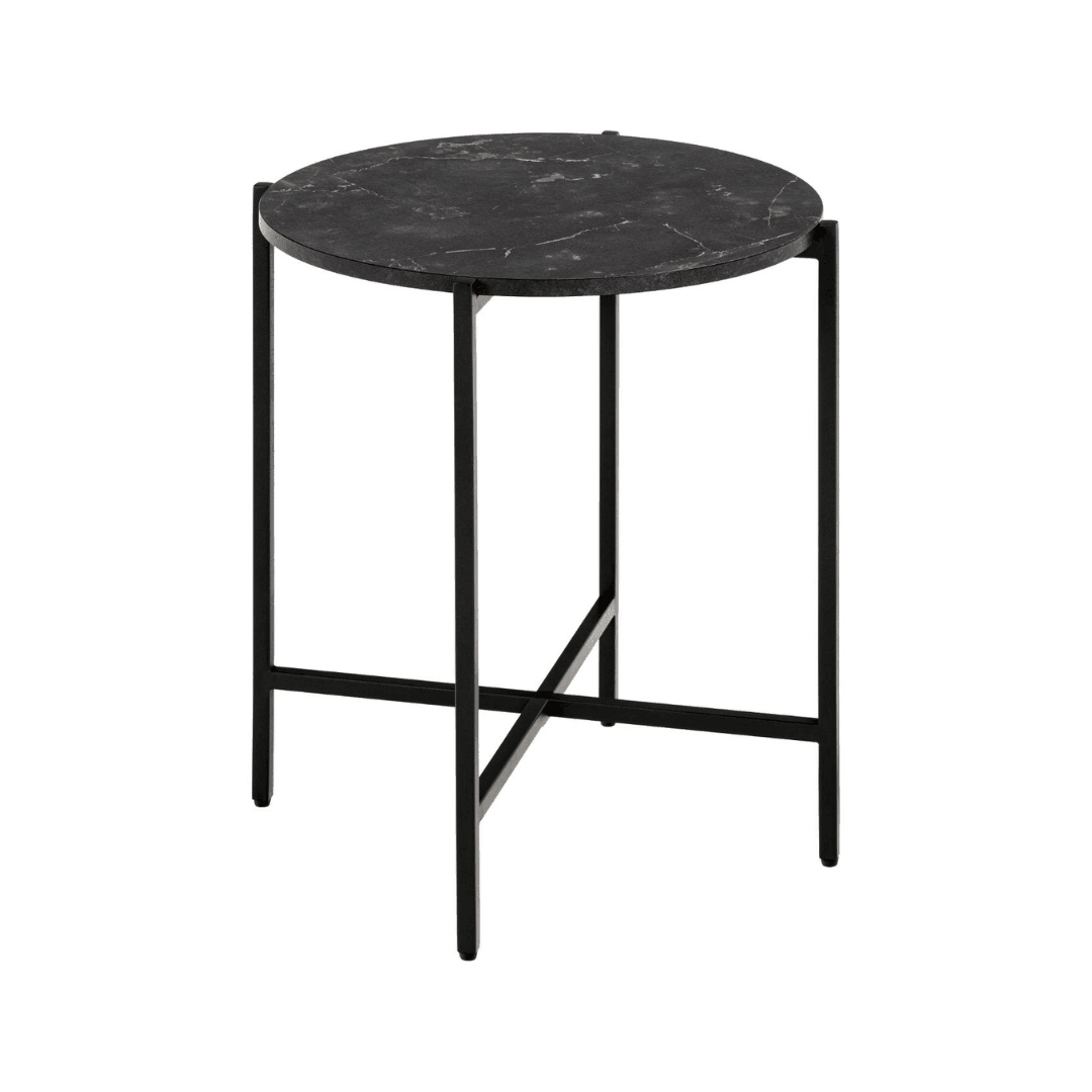 If you like minimalistic but unique furniture, then the Lamoine end table is guaranteed to please you. This model brings a calm feeling to your home with its round, black marble-look metal table top. The thin steel base provides stability and a light, modern effect, making it a great fit for any style of living room. Also available as a coffee table.