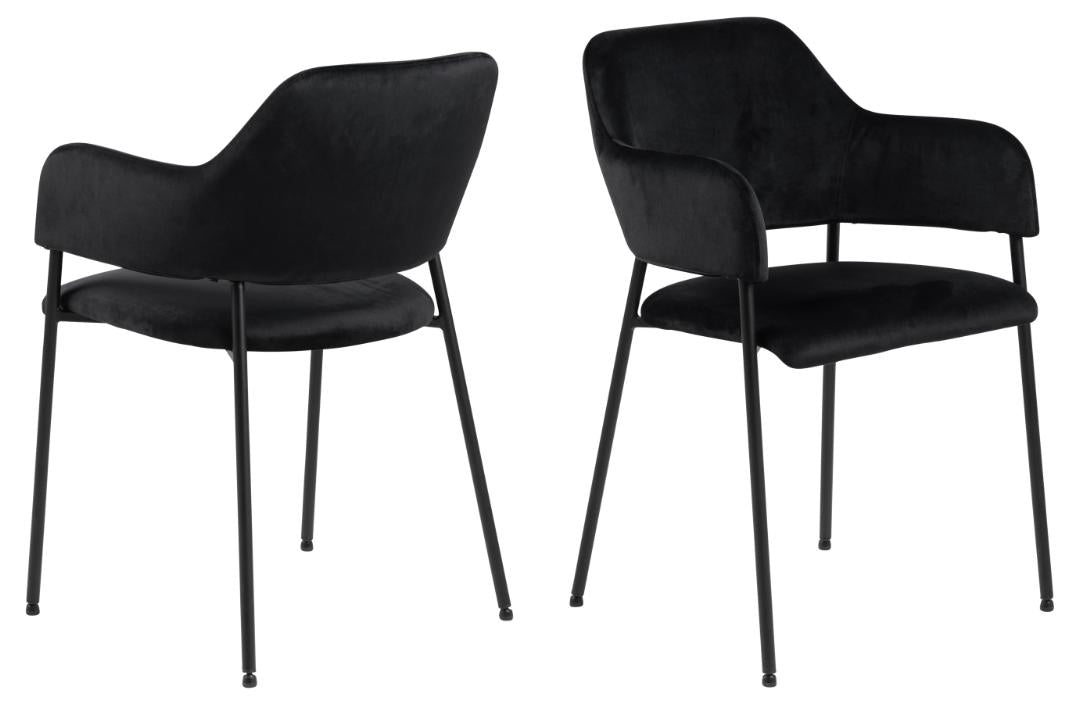 Finoman ívelt formájával a fekete színű Lima étkezőszék magához ölel, és stílusos étkezést tesz lehetővé. A bársony kárpitozású, karfás ülőfelületet és a háttámlán lévő jellegzetes rést egy fekete porszórt fém váz köti össze. Egy modern szék, amely nemcsak elegáns, hanem kényelmes is.