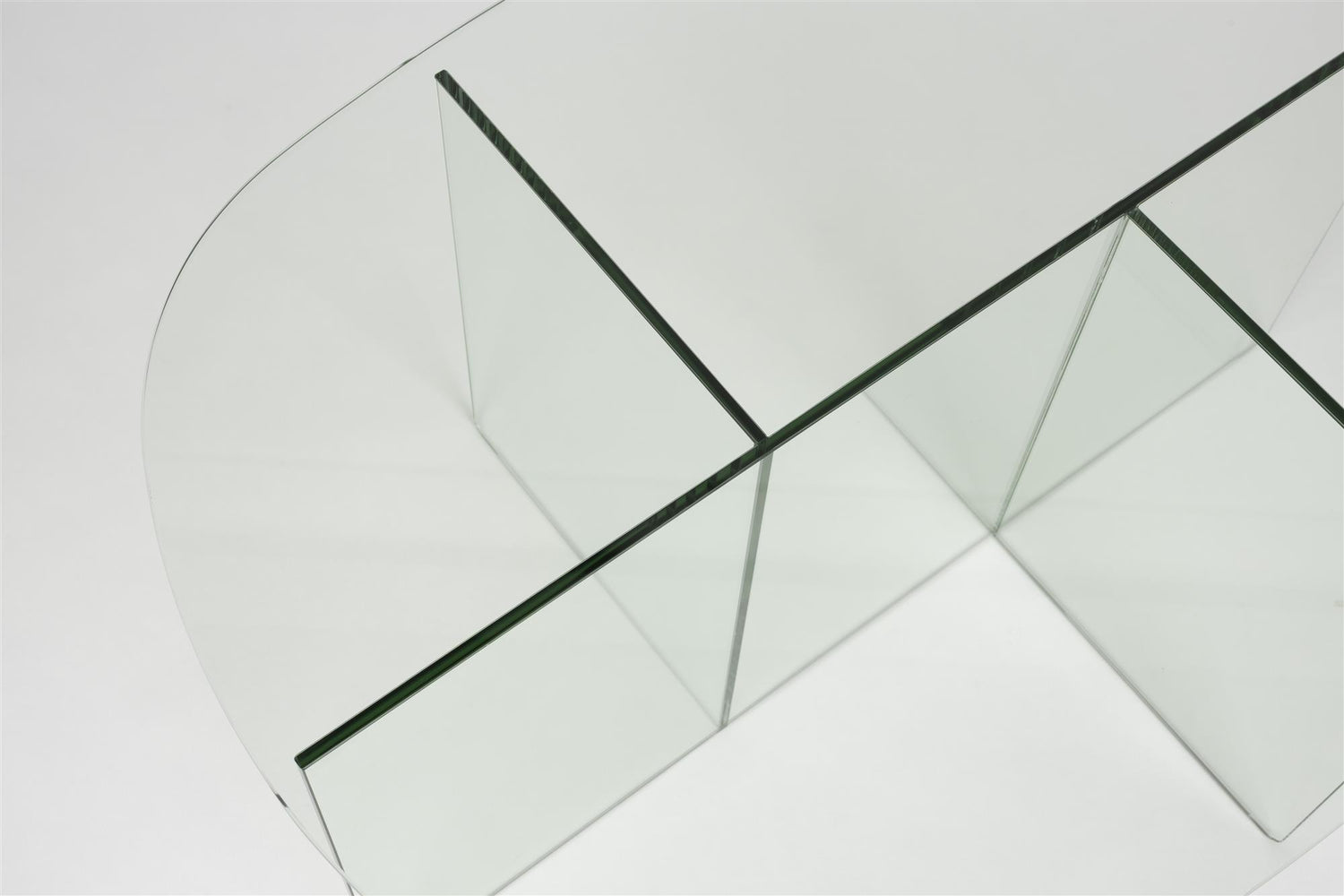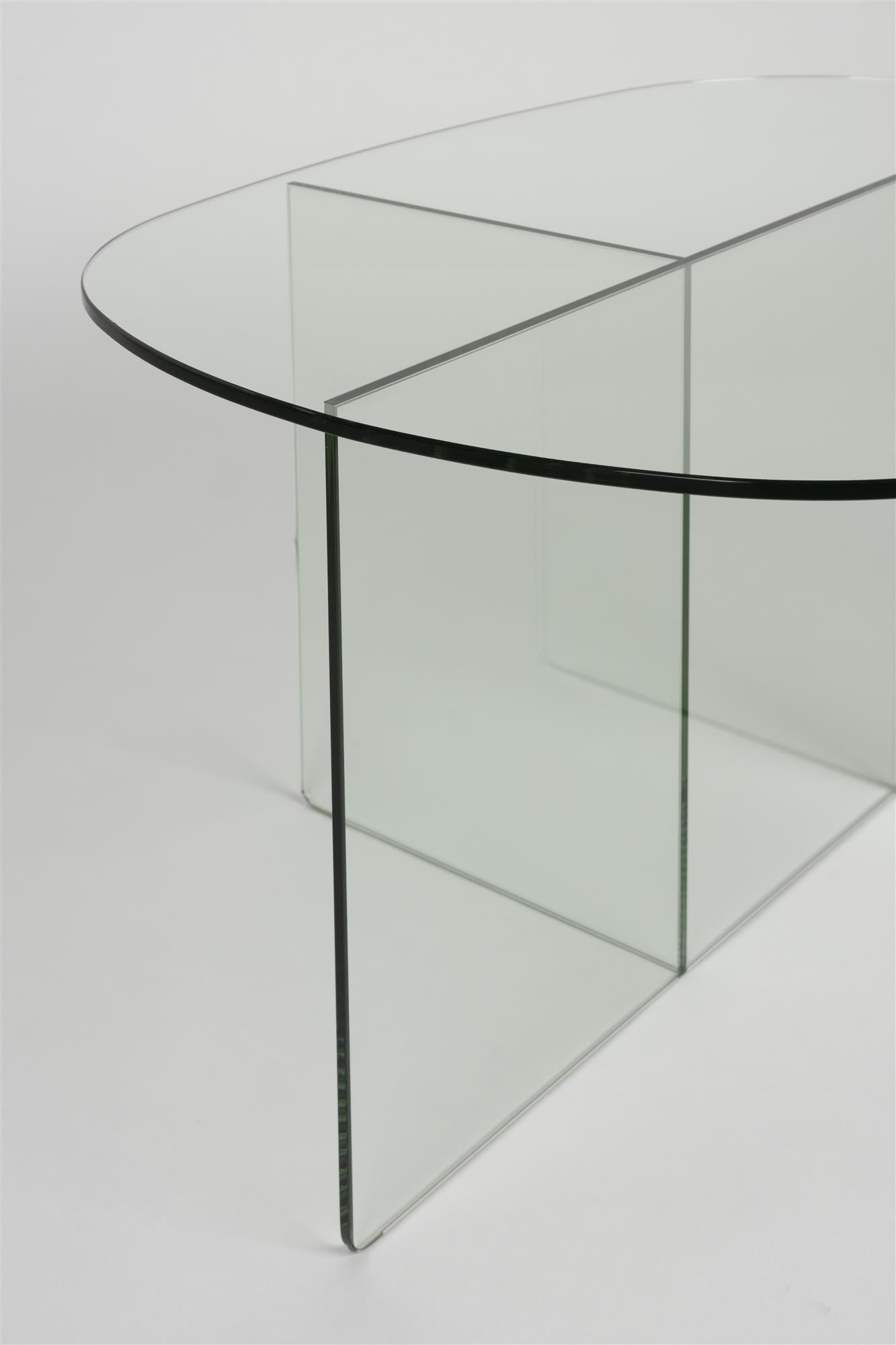 Letisztult, könnyed és meglepően látványos: a Linea sorozat ügyesen játszik az átlátszósággal. Ezek a dohányzó- és mellékasztalok erős üvegből készültek, ami légies megjelenést kölcsönöz nekik, és anélkül teremt különleges hangulatot, hogy zsúfolttá tenné a teret. Mégis, ezek a darabok azonnal vonzzák a tekintetet. A keresztezett panelekből álló szerkezet gyönyörű grafikai mintát alkot, ami az ovális asztallappal ötvözve egyszerre modern és időtlen megjelenést eredményez.