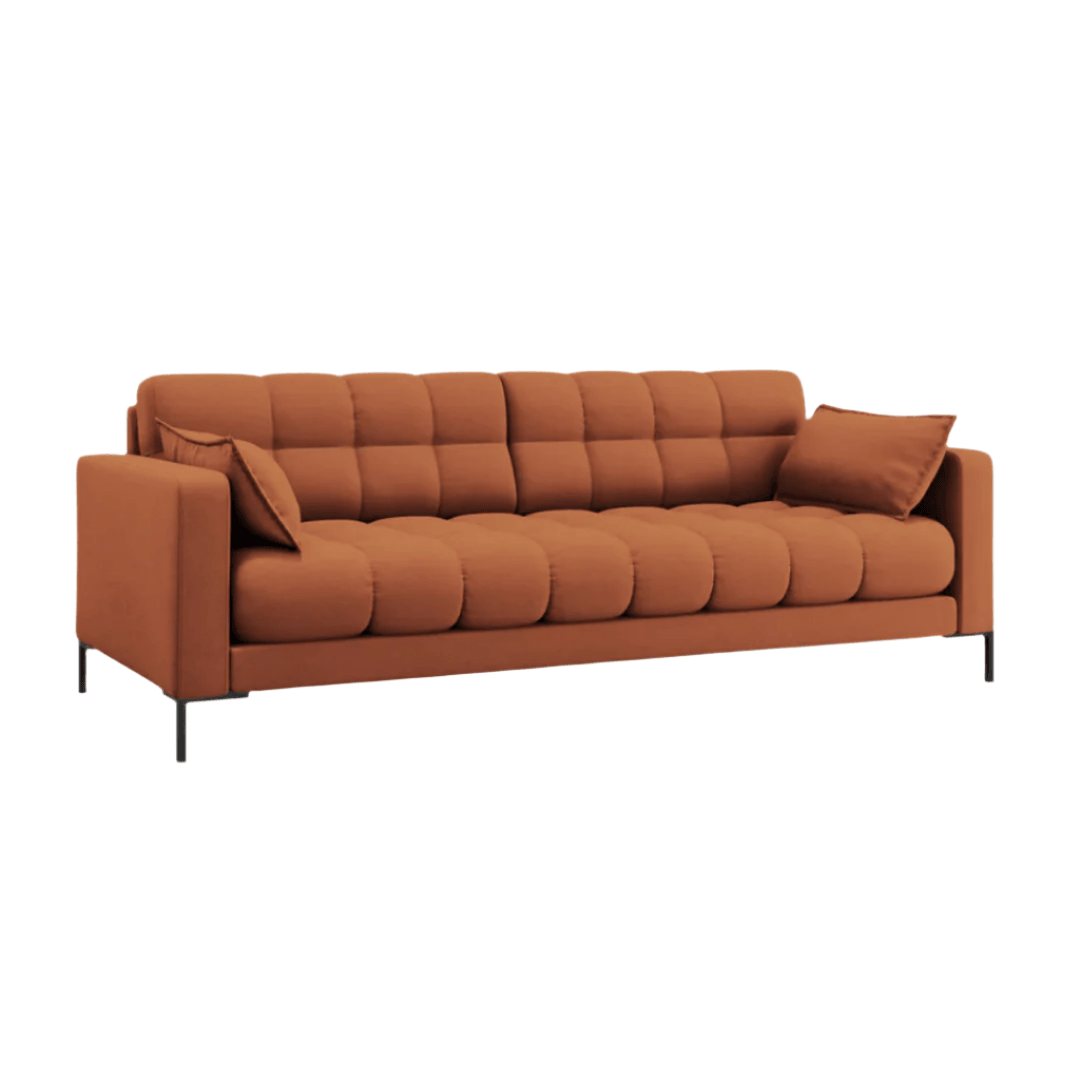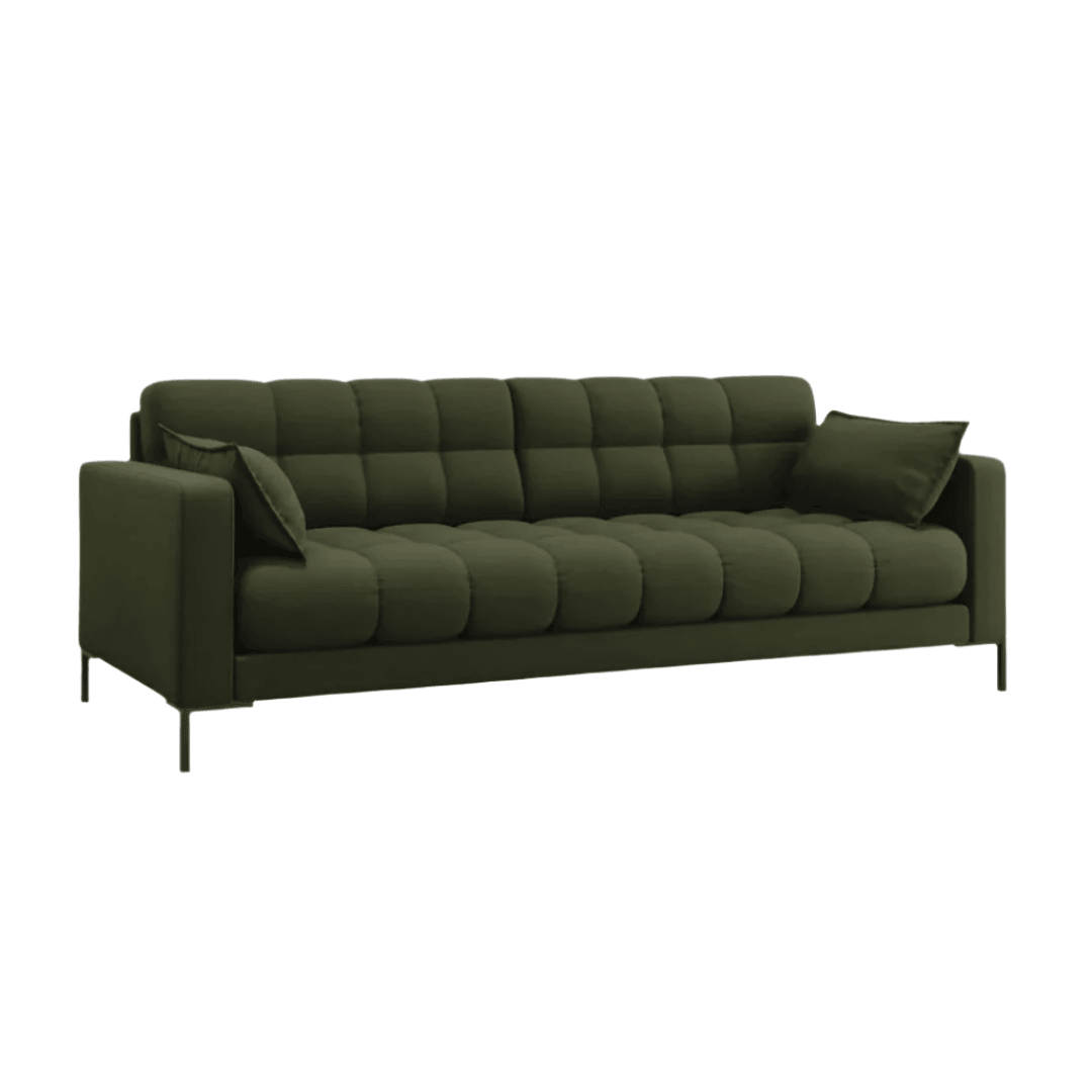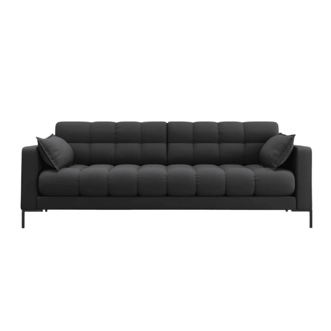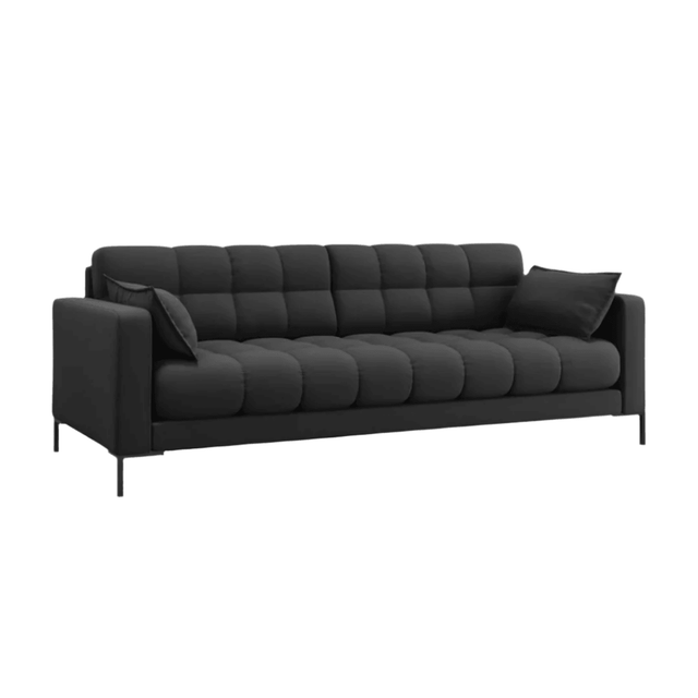 A háttámla és az ülés gondos foltvarrásával a Mamaia kanapé kollekció egyedi, jellegzetes és dinamikus energiával tölt meg minden belső teret. Egy pillantás rá, és alig várod, hogy hátradőlj, vagy ami még jobb, időt tölts kedvenc filmed nézésével vagy egy jó könyv olvasásával. A dekoratív díszítéssel ellátott oldalpárnák még nagyobb kényelmet biztosítanak, és nagyon stílusos hatást keltenek. A gyönyörű színű szövet kárpitok és a geometrikus fekete fémlábak a modernitás és az elegancia ötvözete.