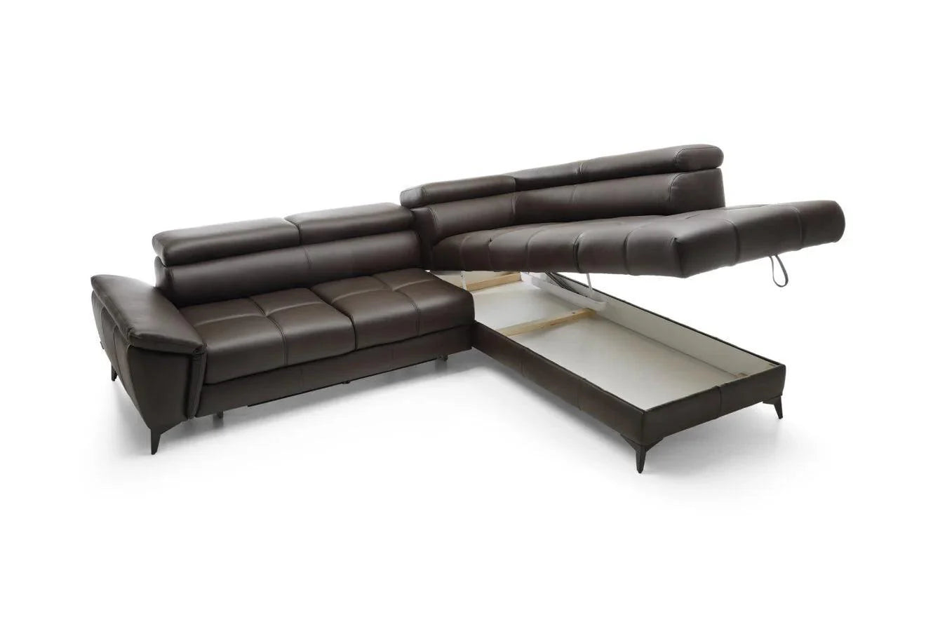A Mocca egy elegáns és funkcionális sarokkanapé, amely tökéletes kiegészítője lehet bármely nappalinak. Egyszerű vonalvezetése és finom varrása rendkívül lenyűgözővé varázsolja a bútort. Ez a modell mozgatható fejtámlákkal van felszerelve, amelyek biztosítják a kényelmes használatot. A kihajtható rendszer lehetővé teszi, hogy a sarokkanapét hangulatos alvóhellyé varázsold, az ágyneműtartó jelenléte pedig további tárolóhelyet biztosít.