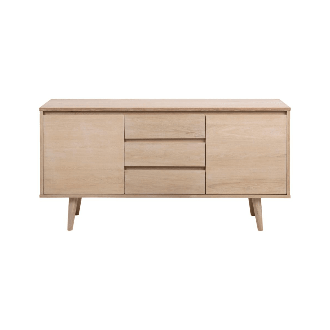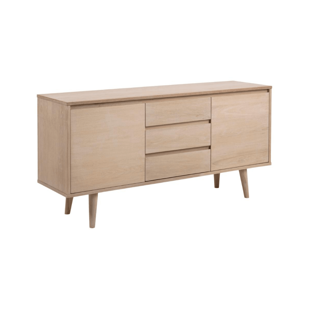 Instead of bringing excitement, the Nagano cabinet unifies the space by bringing a peaceful energy to the room with the appearance of white pigmented oak. More importantly, it is very spacious. In addition to the two closed cabinets, you can also store your belongings in three drawers. In order to give a nostalgic feel to the design, it is designed with strong, tapered legs.