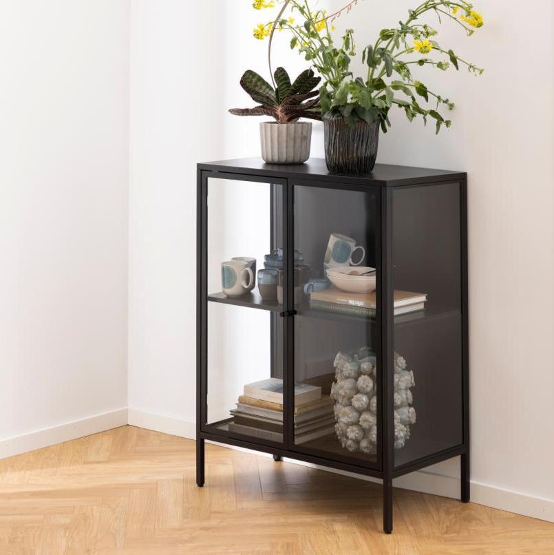 Bring an industrial feel to your home with the Newcastle metal cabinet with glass doors. The powder-coated metal frame gives the room a modern feel, while the transparent doors complete the look. Use the cabinet as a great way to expand your space and add storage space at the same time.