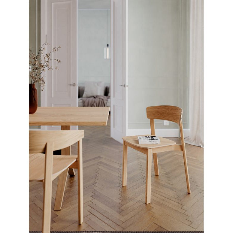 The Nord chair has a light and clean look, inspired by 20th century Scandinavian furniture. Made from simple components, the chairs have wide backrests that are delicately suspended from the structural elements. The design embodies a refined, distinctive form that can be used for a variety of applications. Nord is also available in a version with armrests.