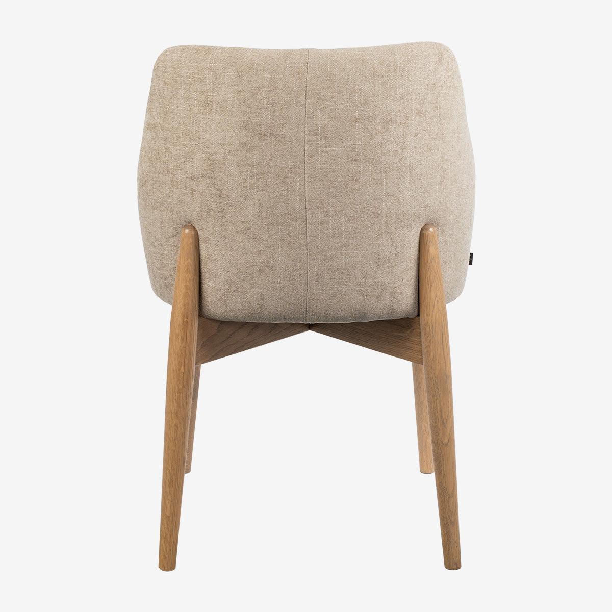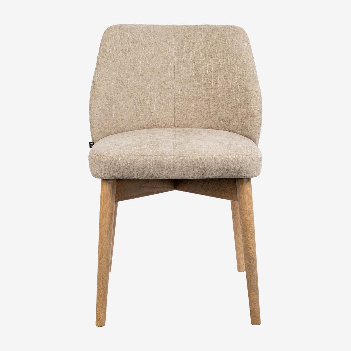 A Nox szék egy letisztult megjelenésű bútordarab, mely vastagon párnázott felületekkel, és enyhén íves háttámlával rendelkezik. Masszív fa váz és lábak tartják, amelyet több rétegű szivacs töltet borít. Huzatának színét és anyagát a saját stílusod szerint választhatod ki a több száz variáció közül. A képen látható Nox szék Re-call 03 szövettel van kárpitozva, és natúr színű lábakon áll.