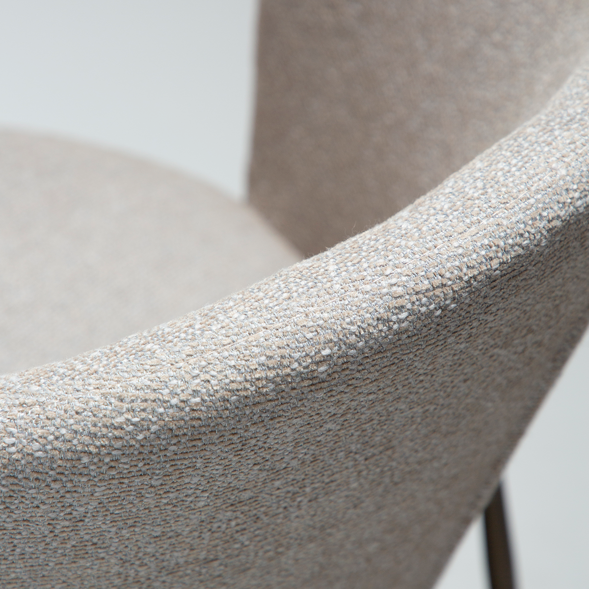 Az Orbit szék jellegzetes és fényűző megjelenést kínál. Kerek, és puha kárpitozott ülőfelületével és körbefutó háttámlájával extra kényelmet biztosít. A szék elegáns dizájnját kihangsúlyozzák a vékony fekete fém lábai, amelyek egy csipetnyi kifinomultságot adnak a bútornak. Az Orbit buklé szék kétféle színben kapható, így könnyedén beleillik bármely enteriőrbe.