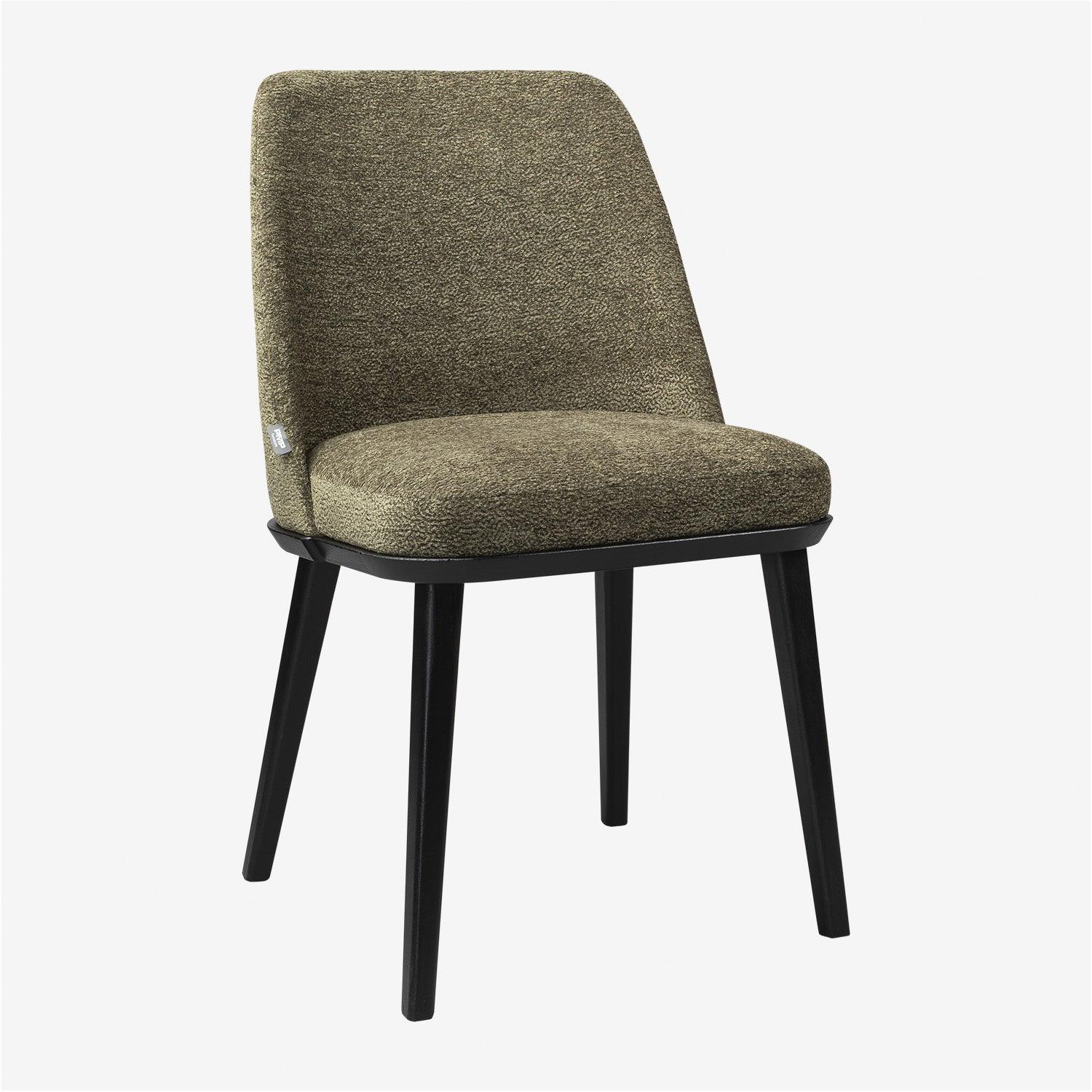 Az Oslo szék egy letisztult megjelenésű bútordarab, mely vastagon párnázott felületekkel, és enyhén íves háttámlával rendelkezik. Masszív fa váz és lábak tartják, amelyet több rétegű szivacs töltet borít. Huzatának színét és anyagát a saját ízlésed szerint választhatod ki a több száz variáció közül. A képen látható Oslo szék Rafael 09 szövettel van kárpitozva, és fekete lábakon áll.