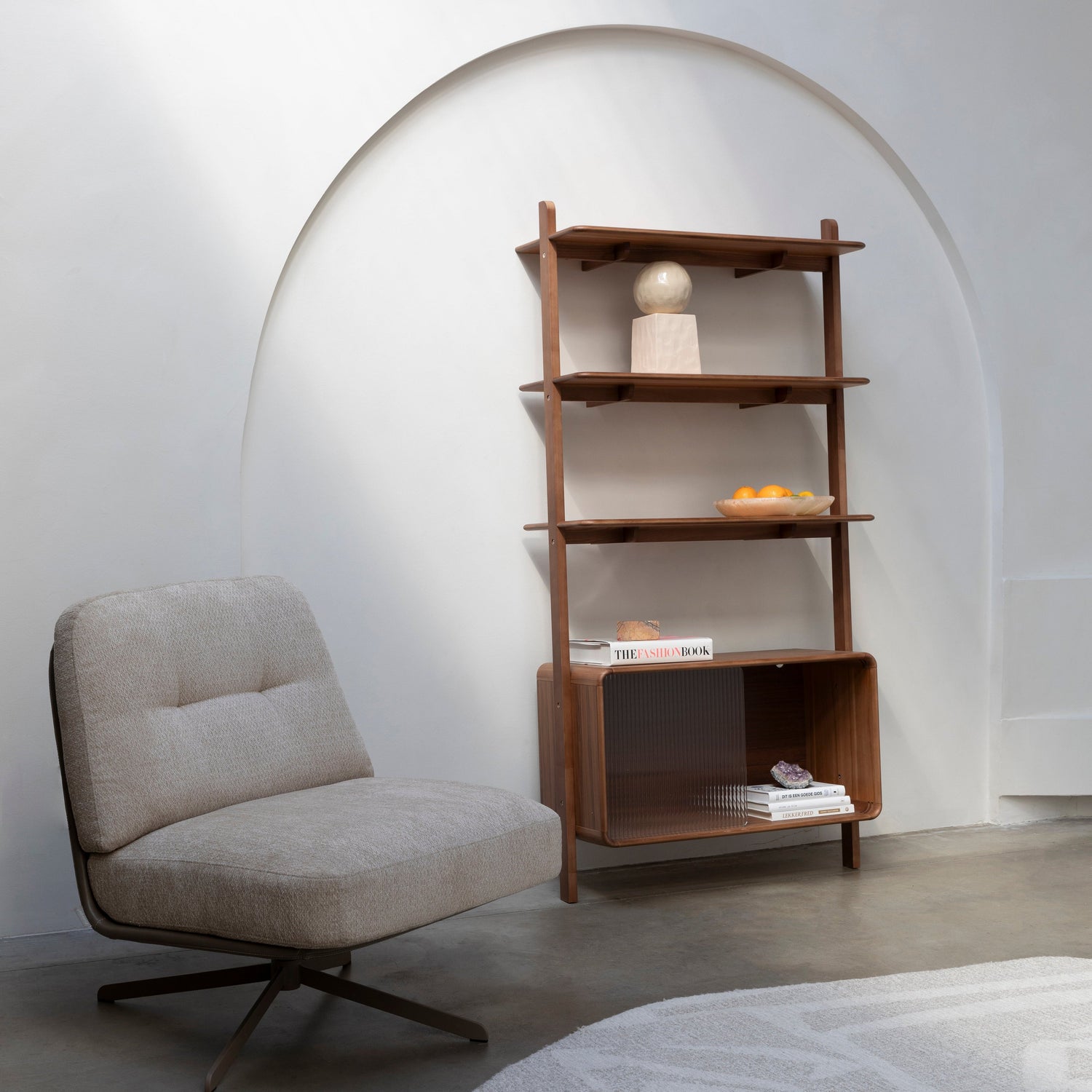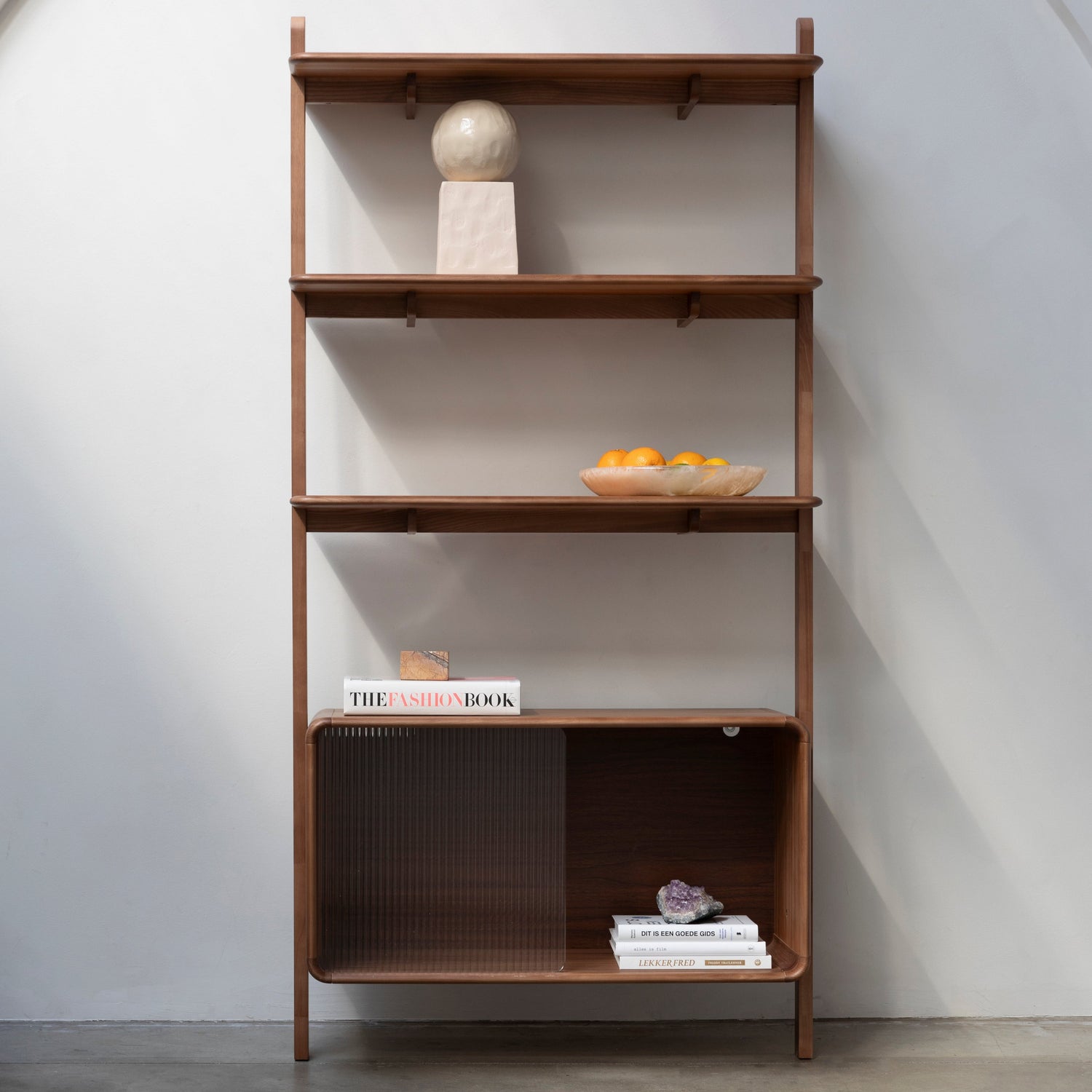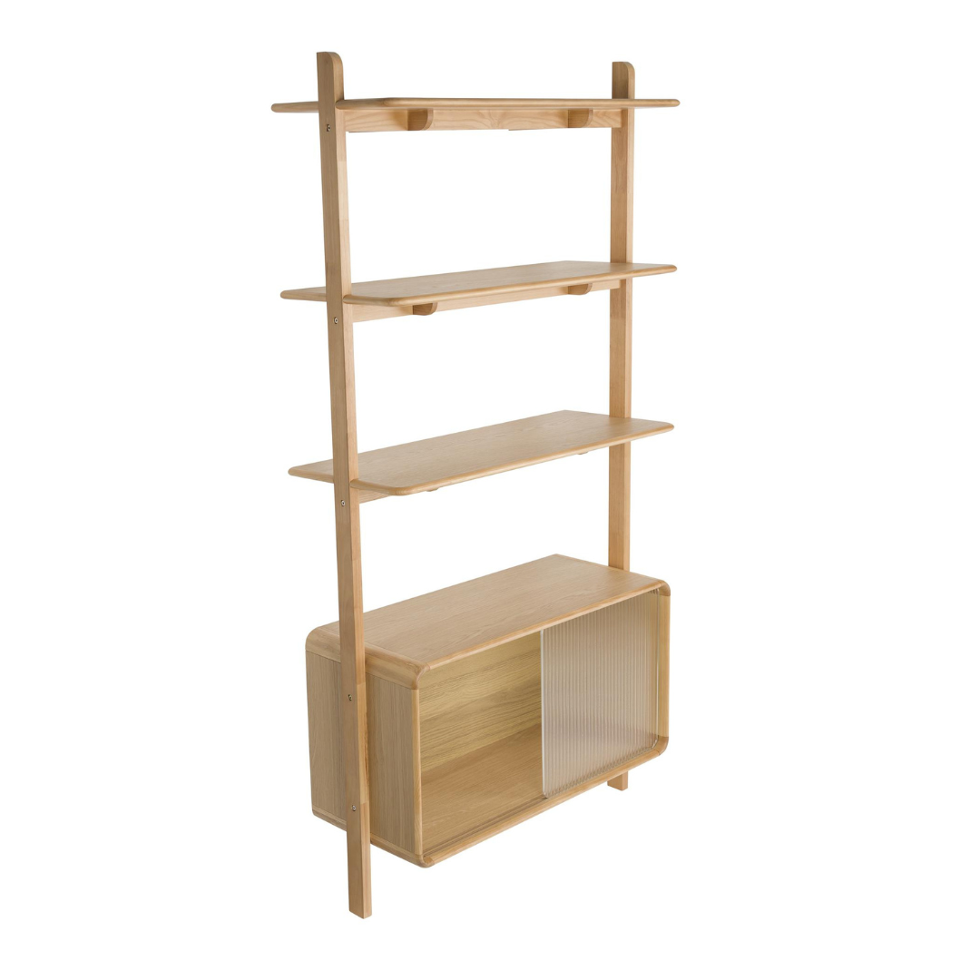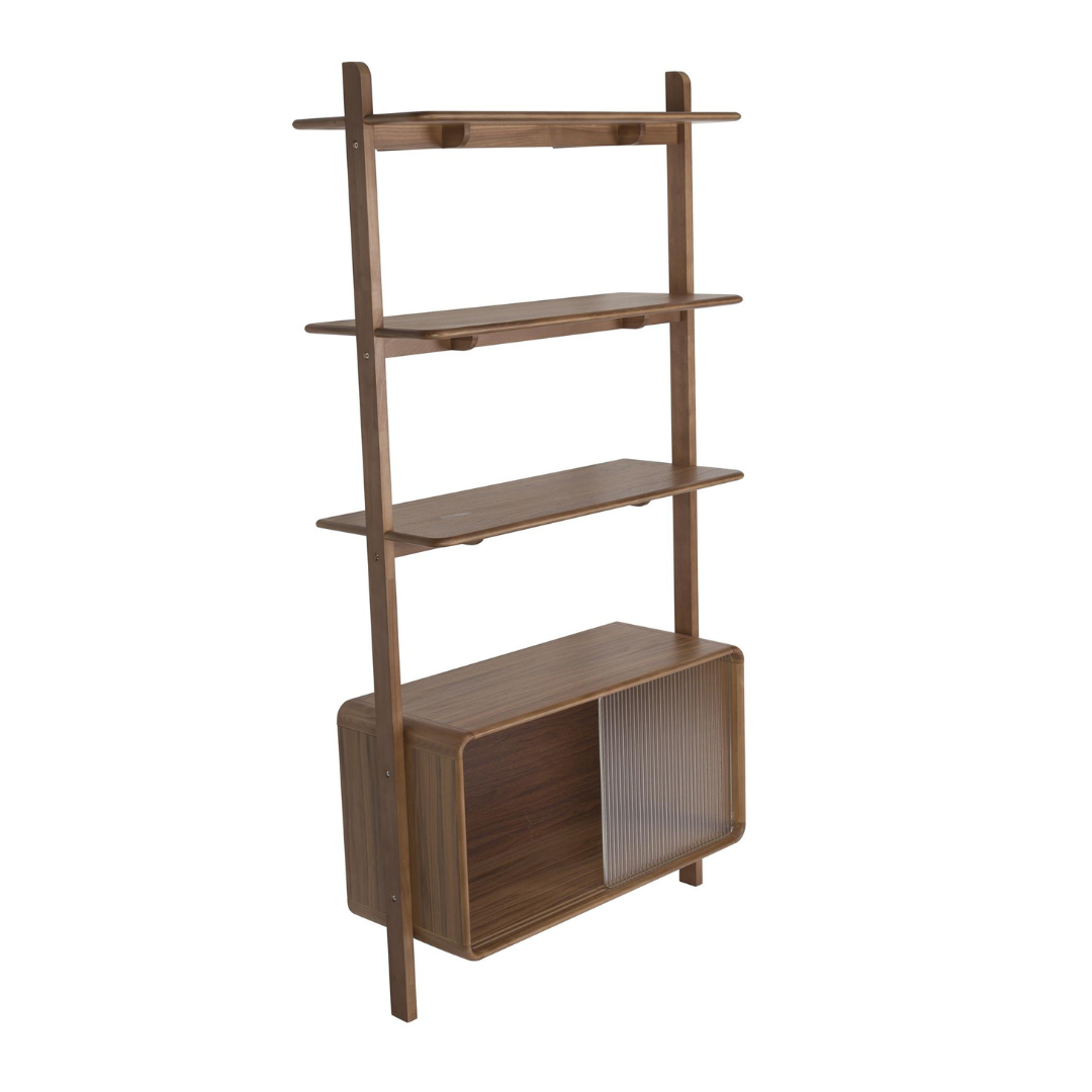 A Rise sorozat – beleértve a komódot, polcot és éjjeliszekrényt – új magasságokba emeli a légkört bármilyen térben. Lekerekített vonalai azonnal megragadják a tekintetet, míg a bordázott üveg tolóajtó játékos hangulatot kölcsönöz a bútoroknak. Válassz a világos tölgy vagy a meleg dió szín közül, és élvezd a stílusos rendezettséget.