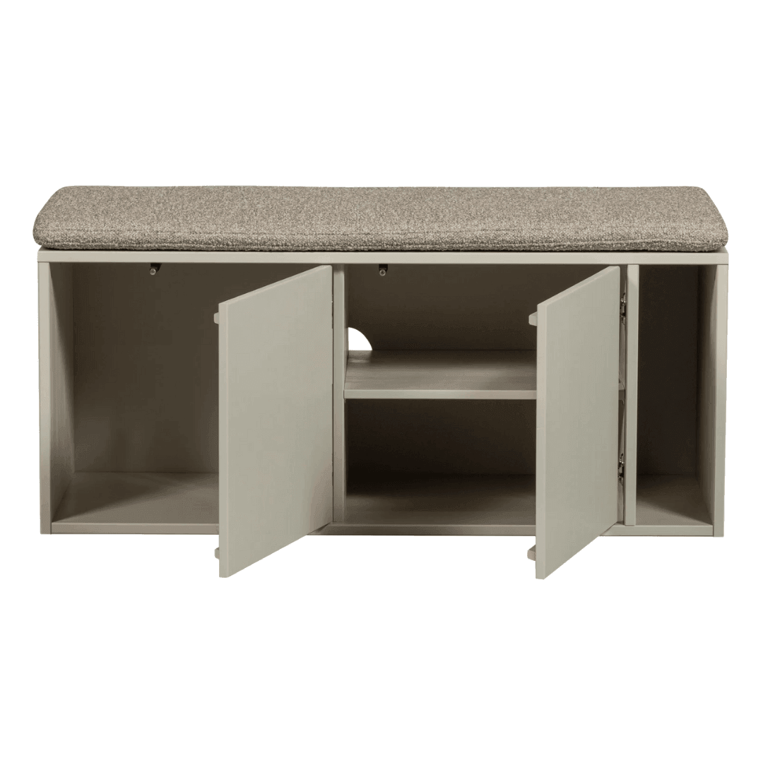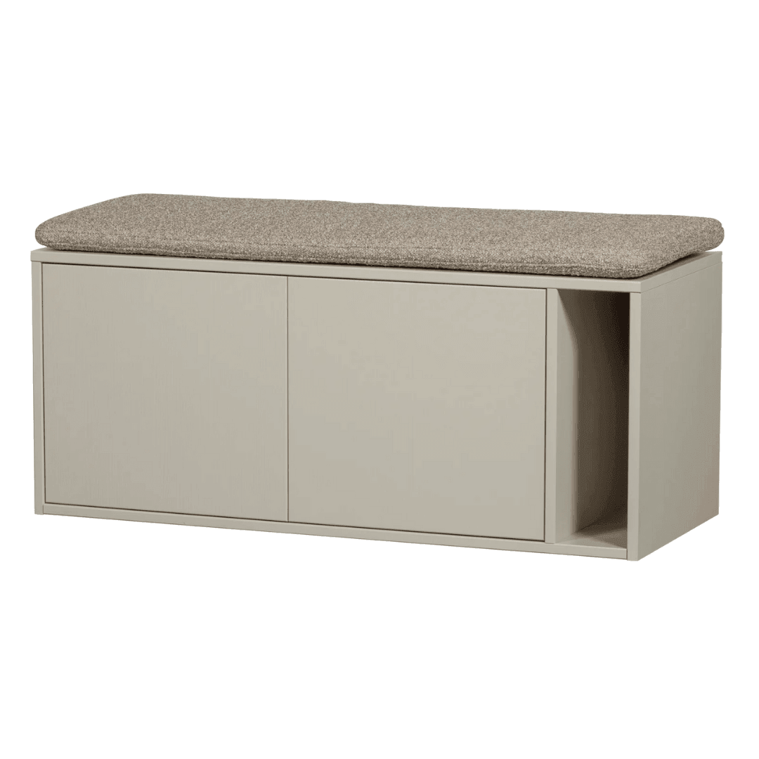 A Settle pad egy egyszerű dizájnnal rendelkező, multifunkcionális darab a holland Vtwonen lakberendező márka kollekciójából. A két tárolóval, amelyek Pust-To-Open rendszerrel záródnak, ez a bútor nem csak egy ülőalkalmatosság, hanem tárolásra is alkalmas. Elegáns szövete, és színe miatt pedig könnyen illeszkedik minden stílusú enteriőrbe.