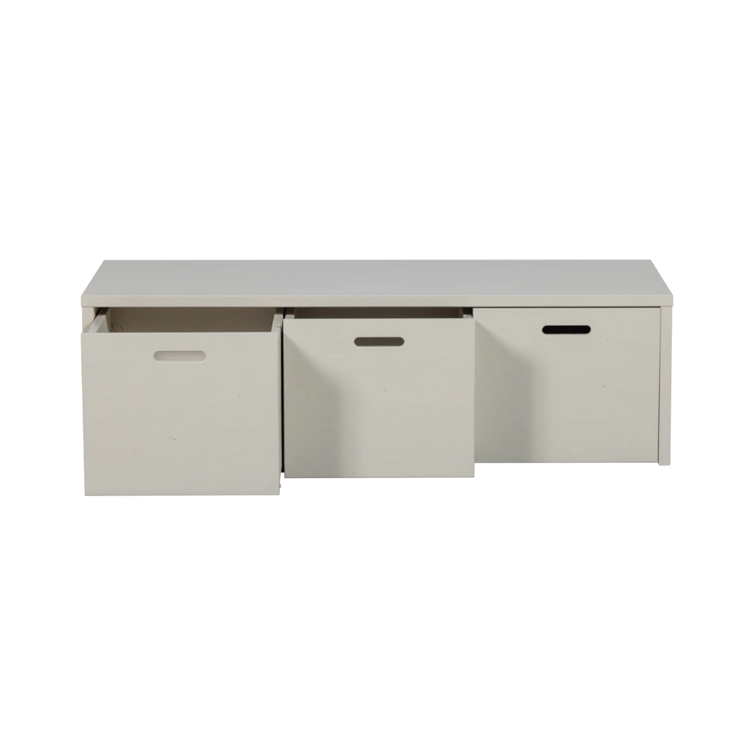 A Silke pad egy praktikus és masszív. Ez a bútordarab tömör, FSC tanúsítvánnyal rendelkező, világosszürke, vagy mélyfekete lakkozású fenyőfából készült. A pad alatt 3 nagy tárolórekesz található. Ezáltal ez a modell nagyon praktikus; ülésre, játékra és tárolásra is alkalmas.
