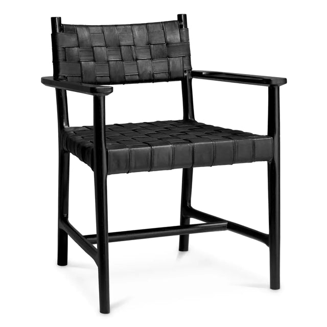 Dobd fel belső tereidet a Tiberio étkezőszékkel, amely a kifinomult elegancia megtestesítője. A pazar fekete bőrszalagok művészien fonódnak egymásba, kifinomult szövött mintát alkotva a karcsú, klasszikus fekete lábakon. Ez a szék a modern luxust testesíti meg, időtlen esztétikát kínál, amely merész, elegáns jelenlétével bármilyen környezetet feldob.