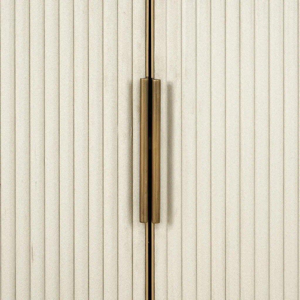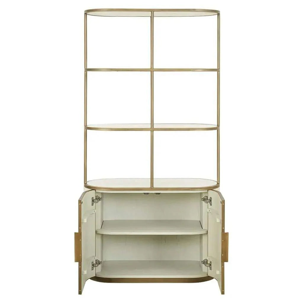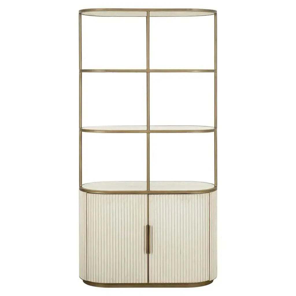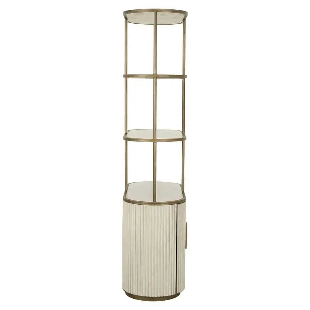 A Tivoli kollekció része ez a polcos szekrény is, mely a sorozatra jellemző dizájnnal rendelkezik. A fém, a fa, a fehér kerámia, és az antikolt arany fém kombinációja egyedülálló megjelenést kölcsönöz neki. Az alsó részén található 2 ajtós kabinet segít a holmik elpakolásában, míg a három polcon elhelyezett könyvek vagy dekorációk bemutathatják a stílusodat. A Tivoli polc elegáns, és esztétikus, így könnyedén illeszkedik bármilyen belső térbe.