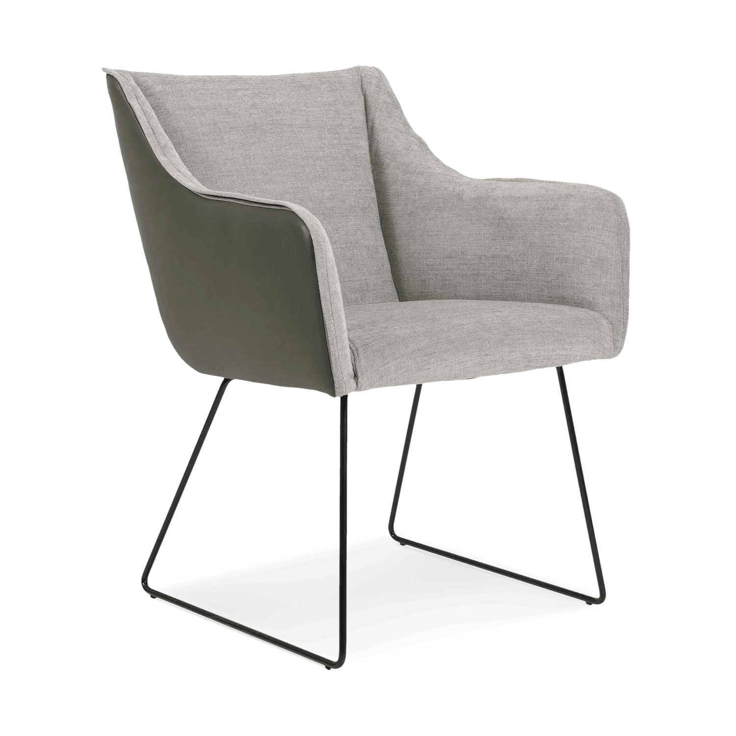 Zippo is a new dining chair with a great design. A special zipper detail runs along the edge of the armrest, creating a subtle border between the super soft fabric inside the chair and the beautiful leather of the outer shell. The fantastic comfort will allow you to dine with friends and family for hours.