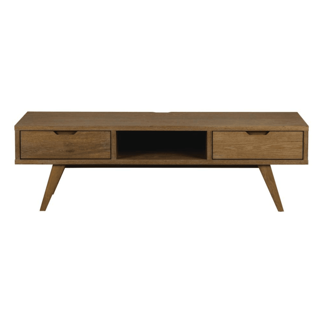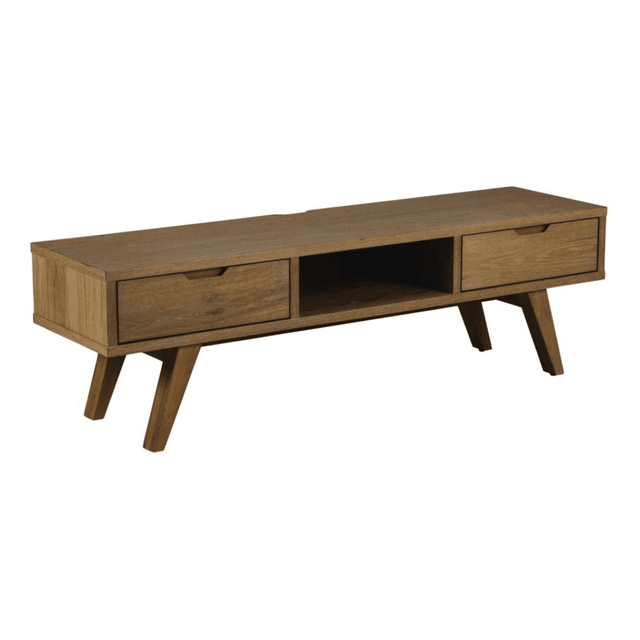 Az A-line TV szekrény a klasszikus skandináv dizájn modern megjelenését képviseli a karcsú kialakításával. Sötét és világosbarna színekben kapható, így könnyedén illeszkedik a különböző stílusú enteriőrökbe. Két széles fiókkal és egy nyitott polccal rendelkezik, így elegendő helyet biztosít a média felszerelések számára. Pigmentált olajozott tölgy furnér anyaga letisztult megjelenést ad, ezáltal természetes összhatást ér el.
