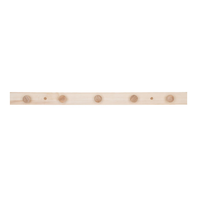 Letisztult megjelenésű, natúr nyárfából készült falifogas, amely bármely előszobába vagy hálószobába jól illeszkedik. Kompakt méretének (70 × 5 cm) köszönhetően helytakarékos, mégis praktikus megoldás kabátok és kiegészítők tárolására.
