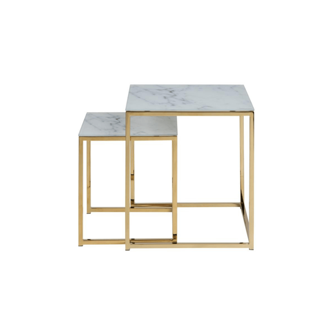 Az Alisma egy két lerakóasztalból álló készlet, amely pazar megjelenésű, és minden, csak nem unalmas. Az arany krómozott alap és a mattüveg asztallap kombinációja minden idők kedvenc márvány megjelenésével izgalmat és energiát visz a szobába. Emellett az asztalok funkcionális és helytakarékos bútorok is, mivel összetolhatóak.
