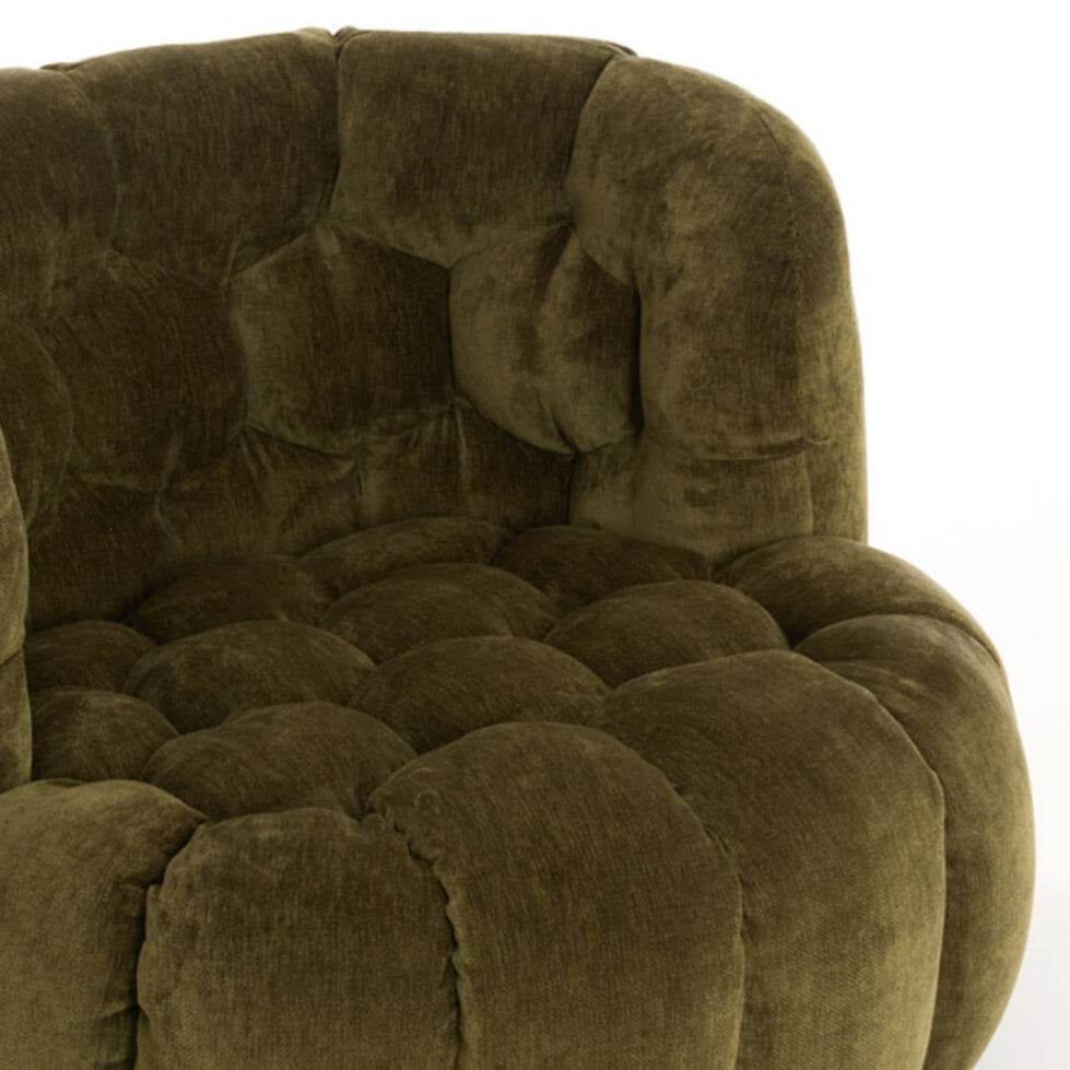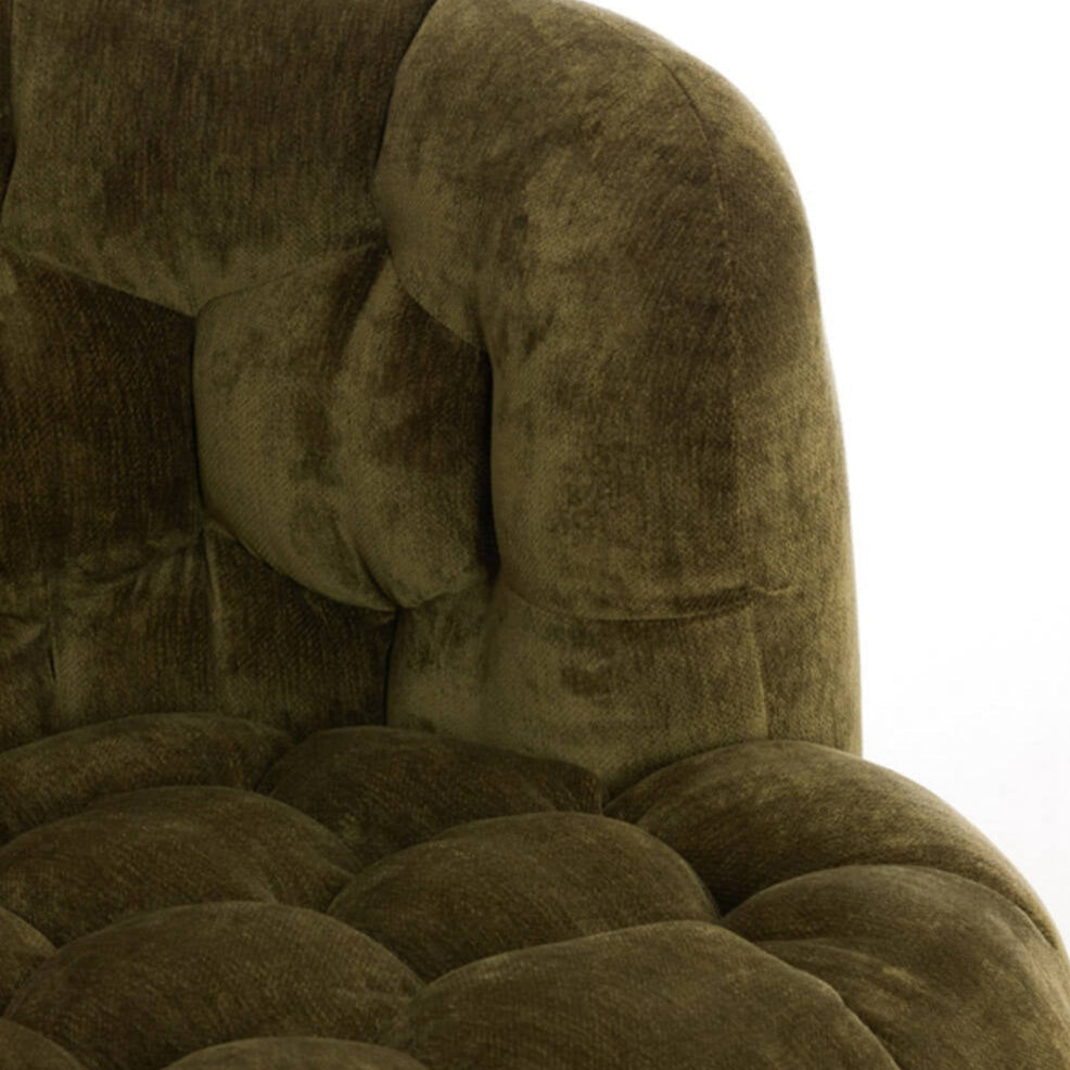 Az Amara fotel egy egyedi bútordarab, amely különleges kialakításával modern és kifinomult hangulatot visz a belterekbe. Letisztult olajzöld színben elérhető zsenília kárpitozása és méhkaptárt idéző díszvarrása gyönyörűen kiemeli környezetéből ezt az ülőalkalmatosságot. Kiválóan illeszkedik a modern szemléletben, kifinomult stílussal berendezett otthonokba. Fedezd fel az Amara különböző variációit.